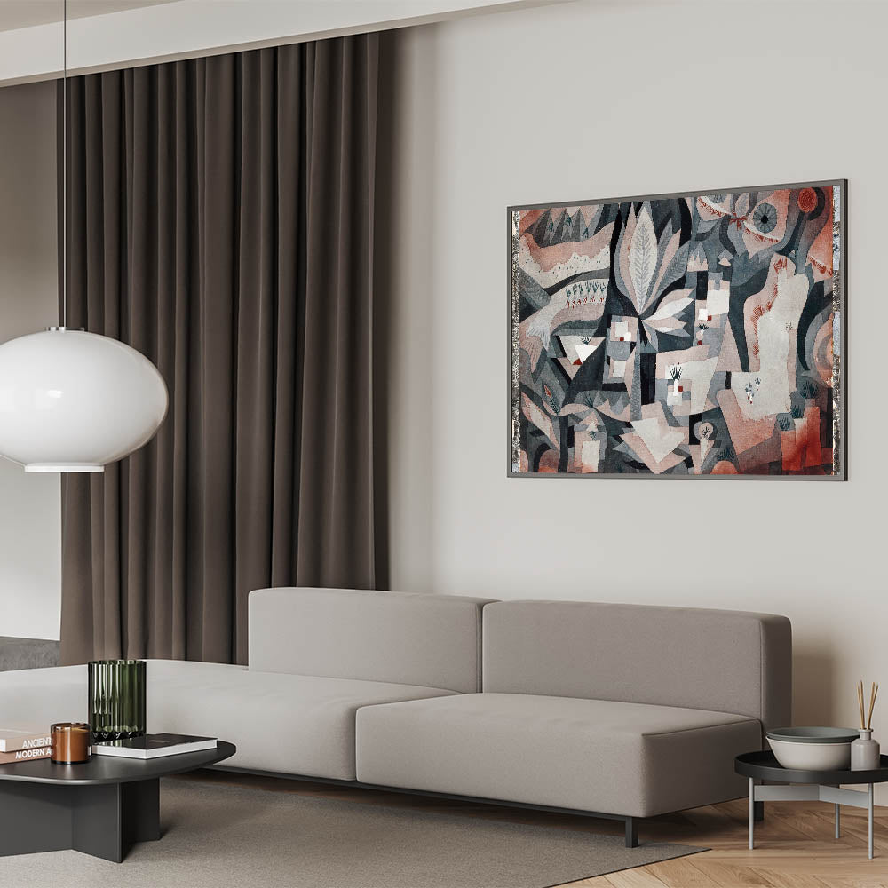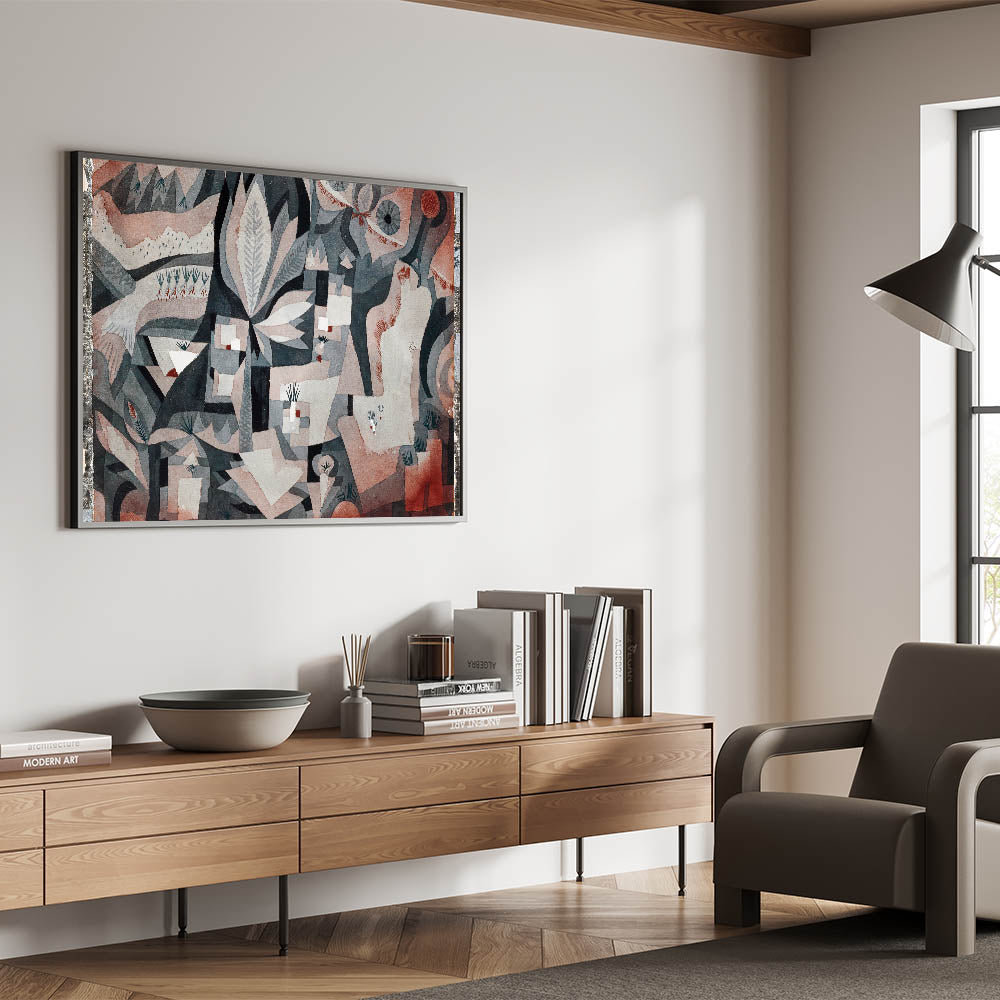 This unique modern art piece is perfect for adding depth and character to your walls. Whether displayed in a minimalist space or among eclectic decor, this stylish wall art will inspire conversation and appreciation. Let Klee’s masterful composition bring harmony and artistry to your home.