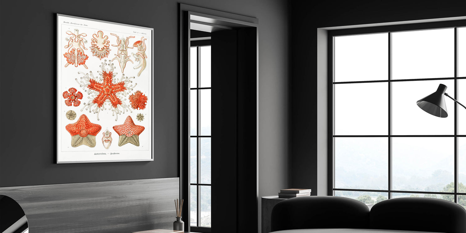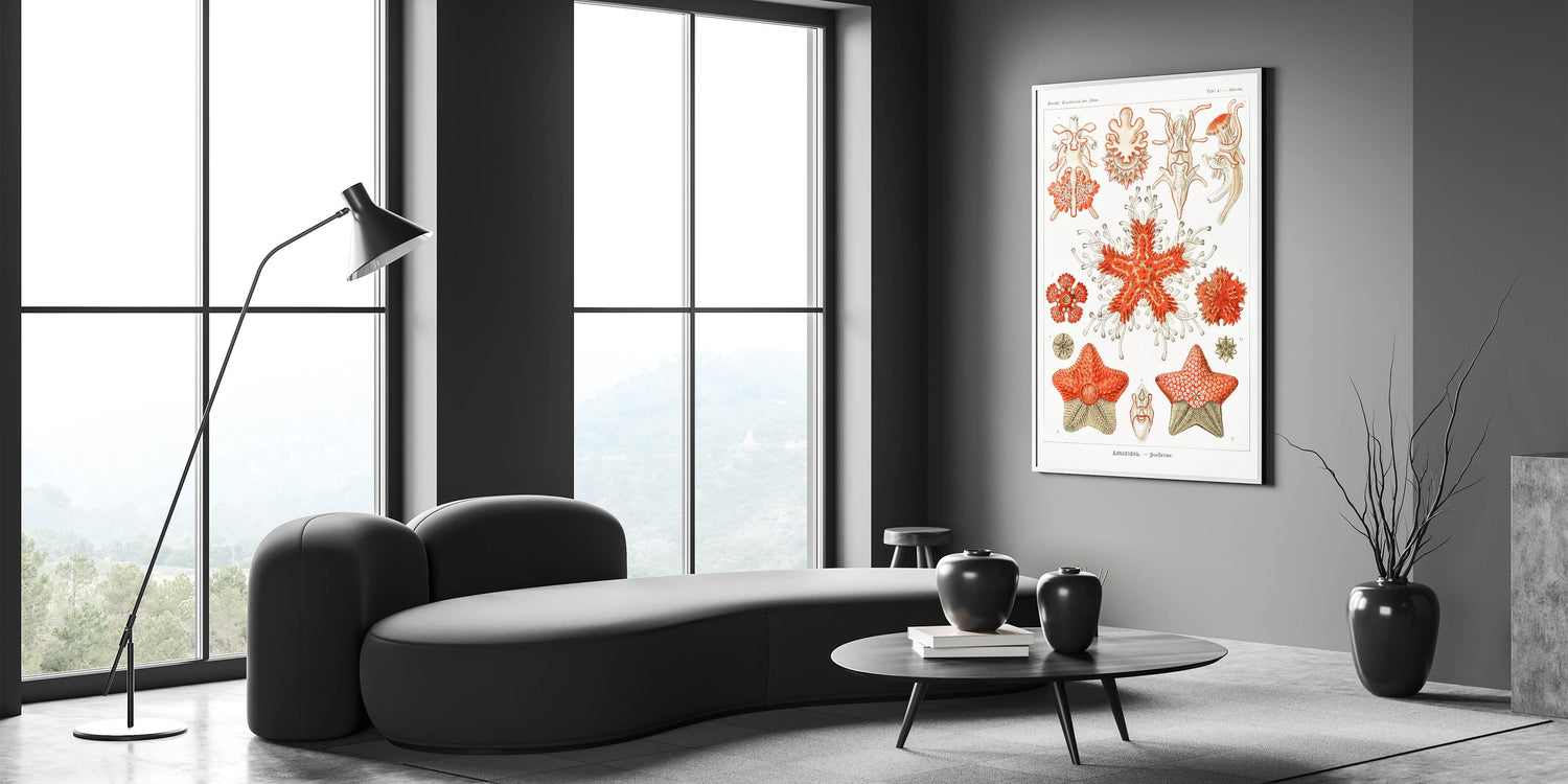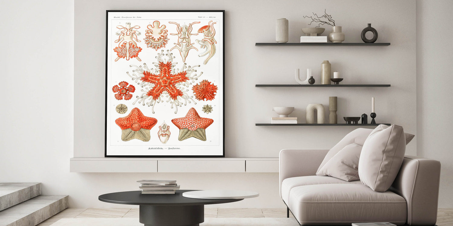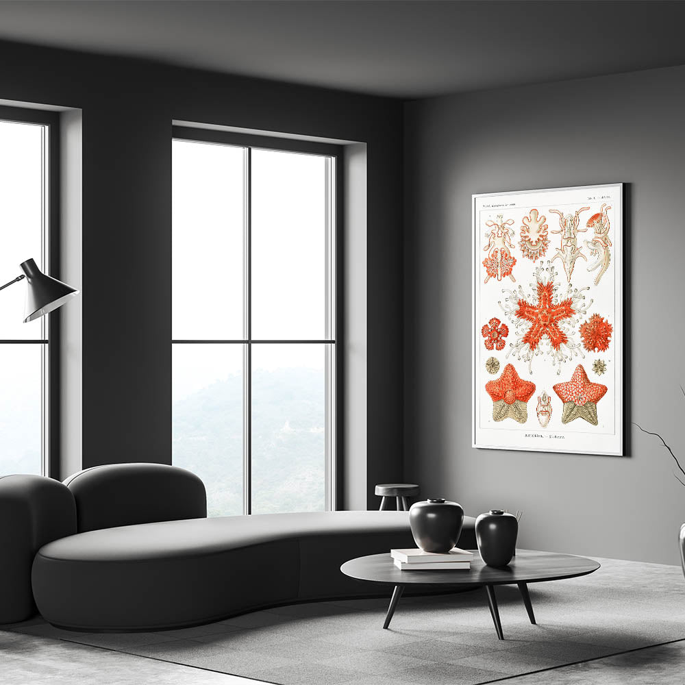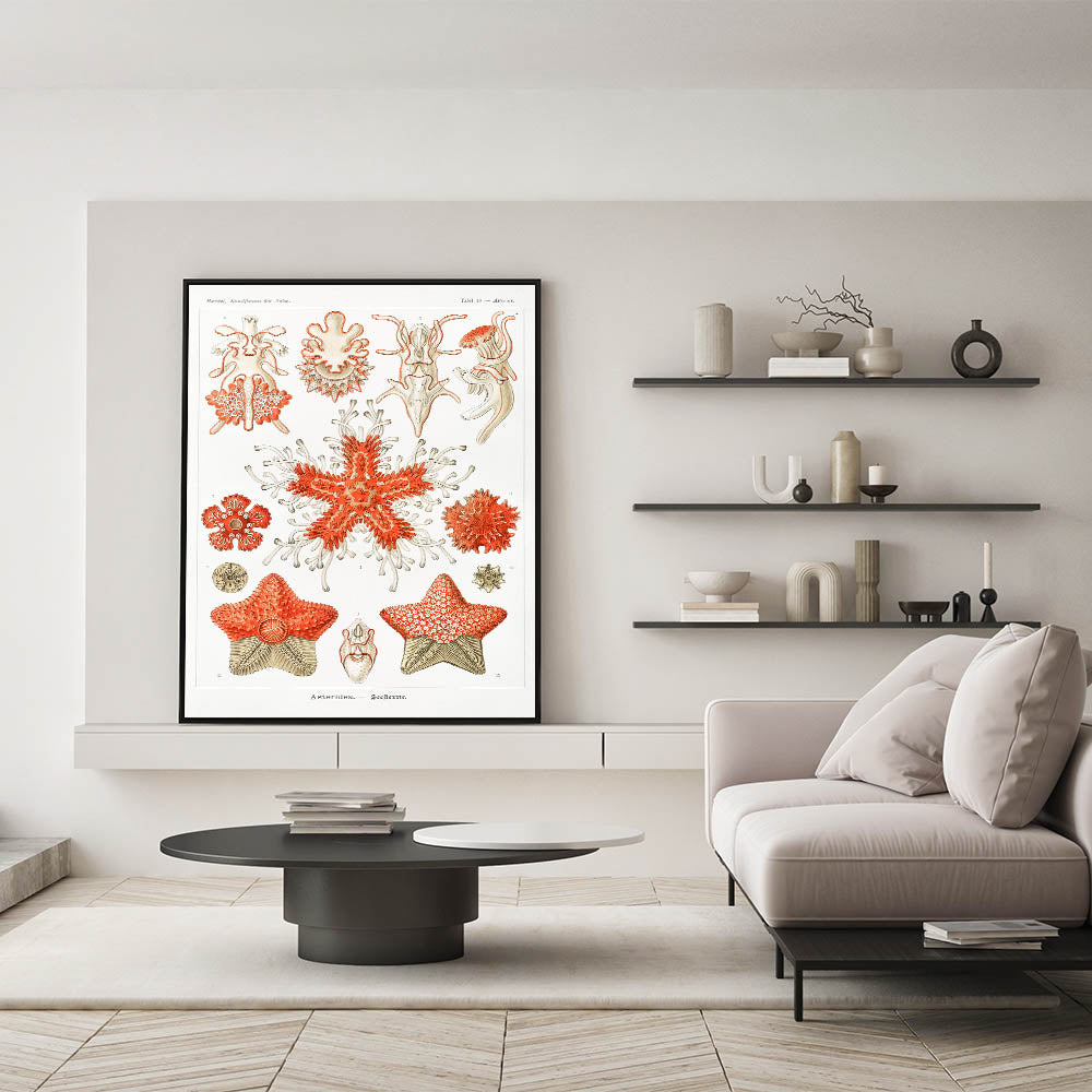 Introduce the elegance of the sea into your home with this stunning Modern Wall Art inspired by Ernst Haeckel's Kunstformen der Natur. This intricate Contemporary Art Piece showcases vibrant coral tones contrasted with subtle beige and white elements, making it a standout feature in any space. Whether you are looking for Trendy Home Decor or a unique Minimalist Modern Decor, this piece offers the perfect blend of style and sophistication.