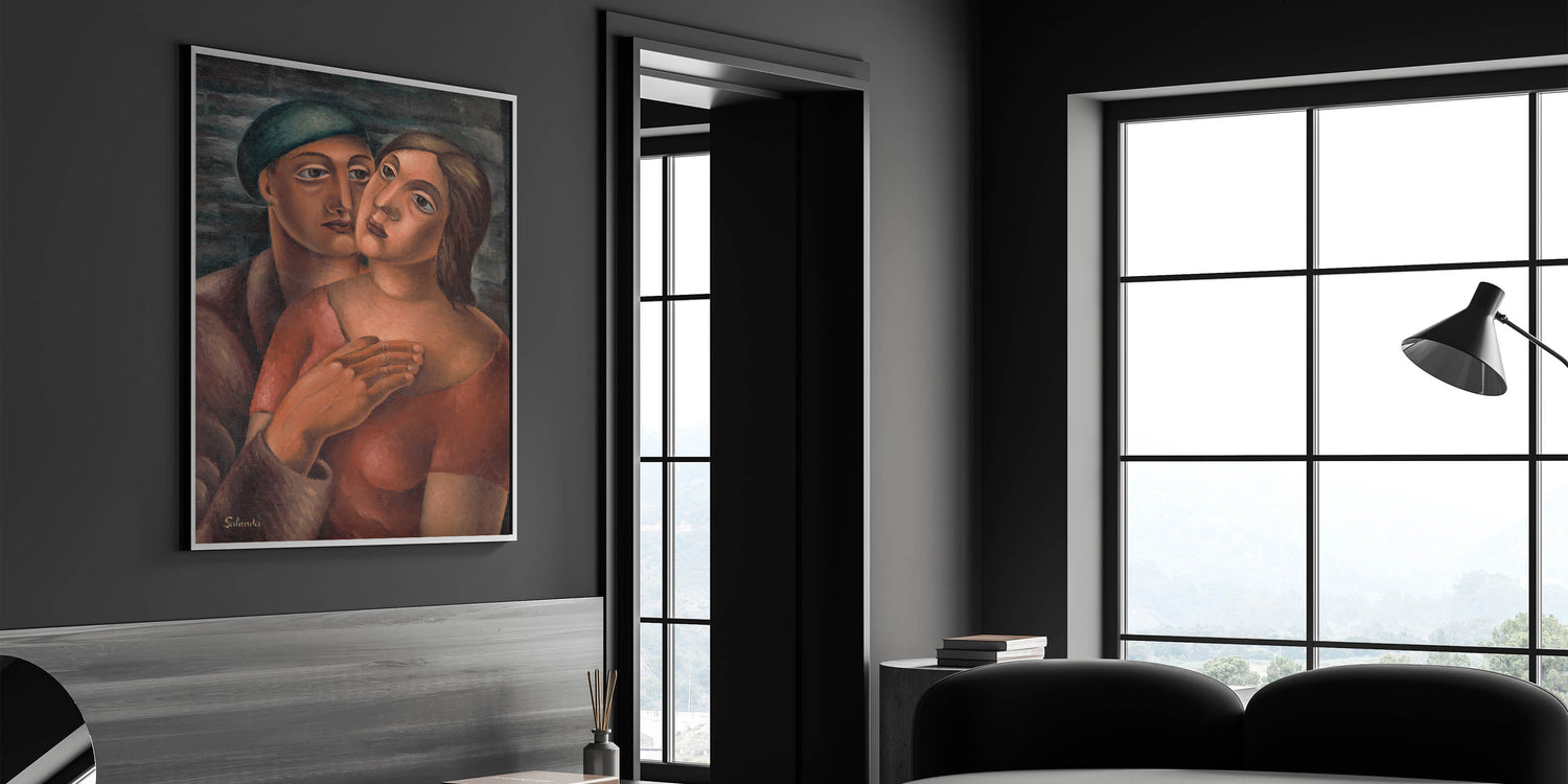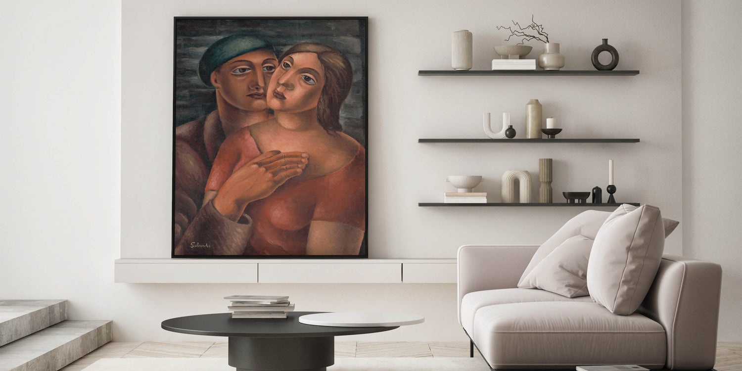 Celebrate the depth of human connection with this Modern Wall Art, featuring an expressive portrait of lovers rendered in warm, earthy tones. The tender composition, with its bold brushstrokes and harmonious colors, captures the essence of intimacy and emotion. This piece is a striking example of Contemporary Art, blending traditional portraiture with modern artistic expression.