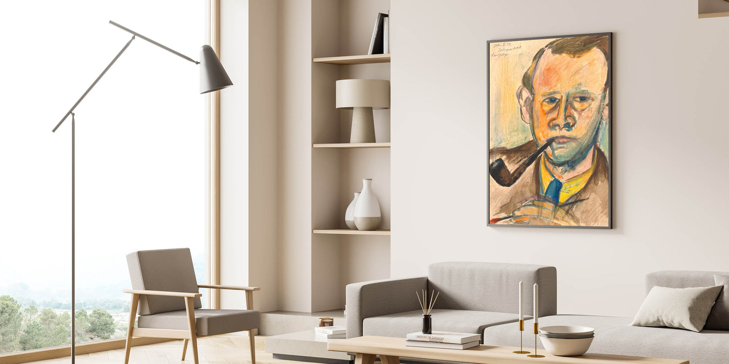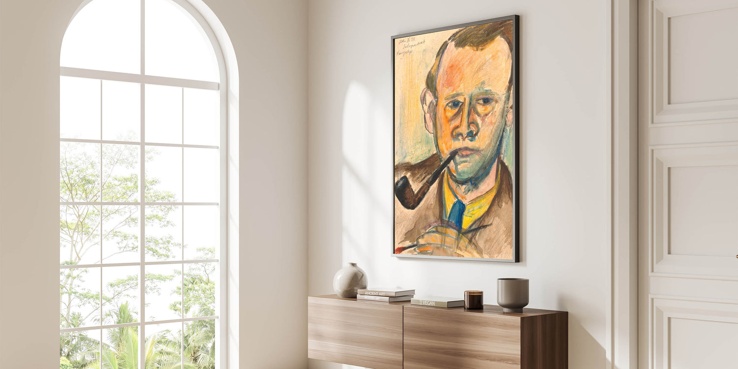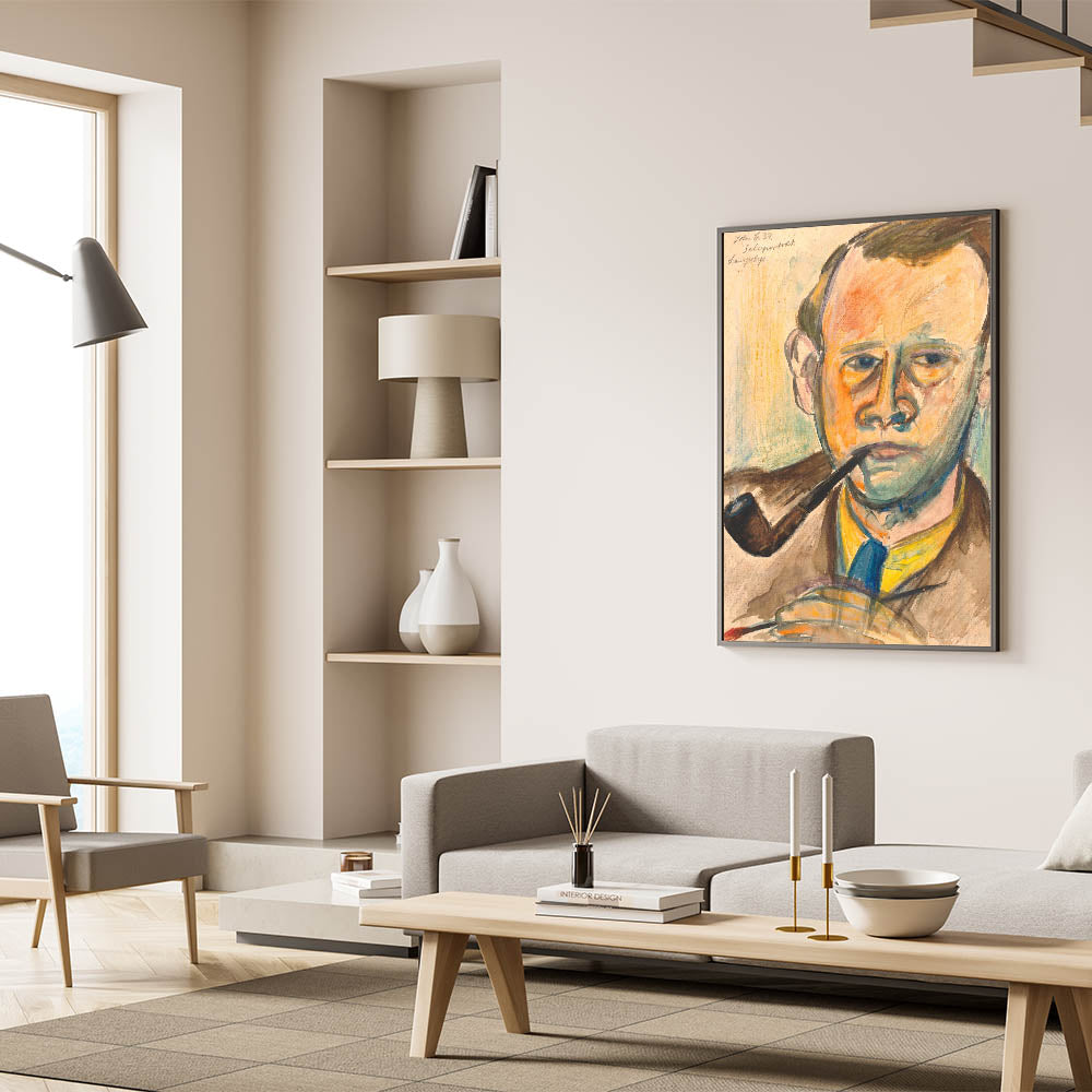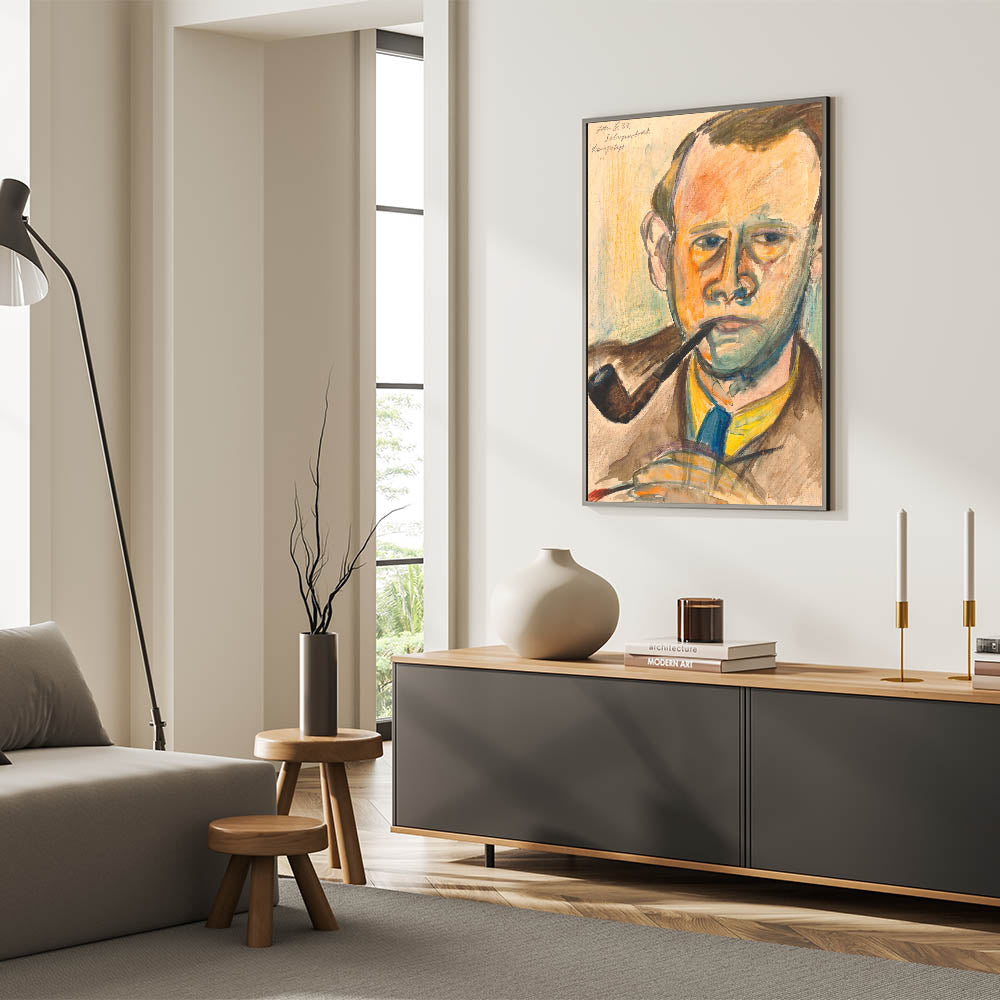 Add depth and personality to your space with this Modern Wall Art, featuring an expressive self-portrait rendered in bold brushstrokes and vibrant colors. The warm tones of yellow, orange, and brown are beautifully contrasted with cool accents of blue, creating a compelling interplay of light and shadow. Perfect for admirers of Contemporary Art, this piece captures the intensity of human emotion and artistic expression.