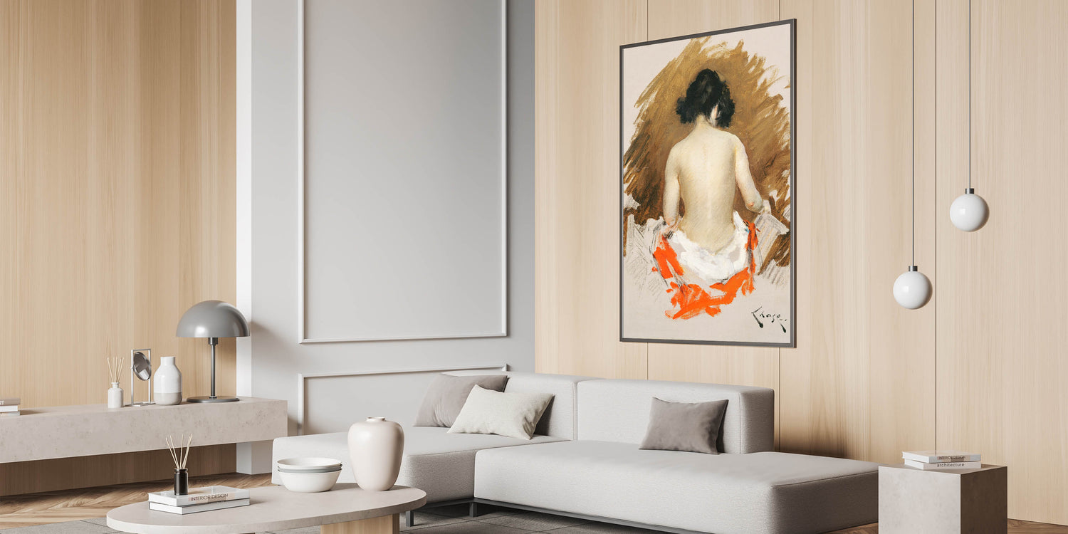 Modern Wall Art - Nude Figure with Kimono | Elegant Minimalist Decor