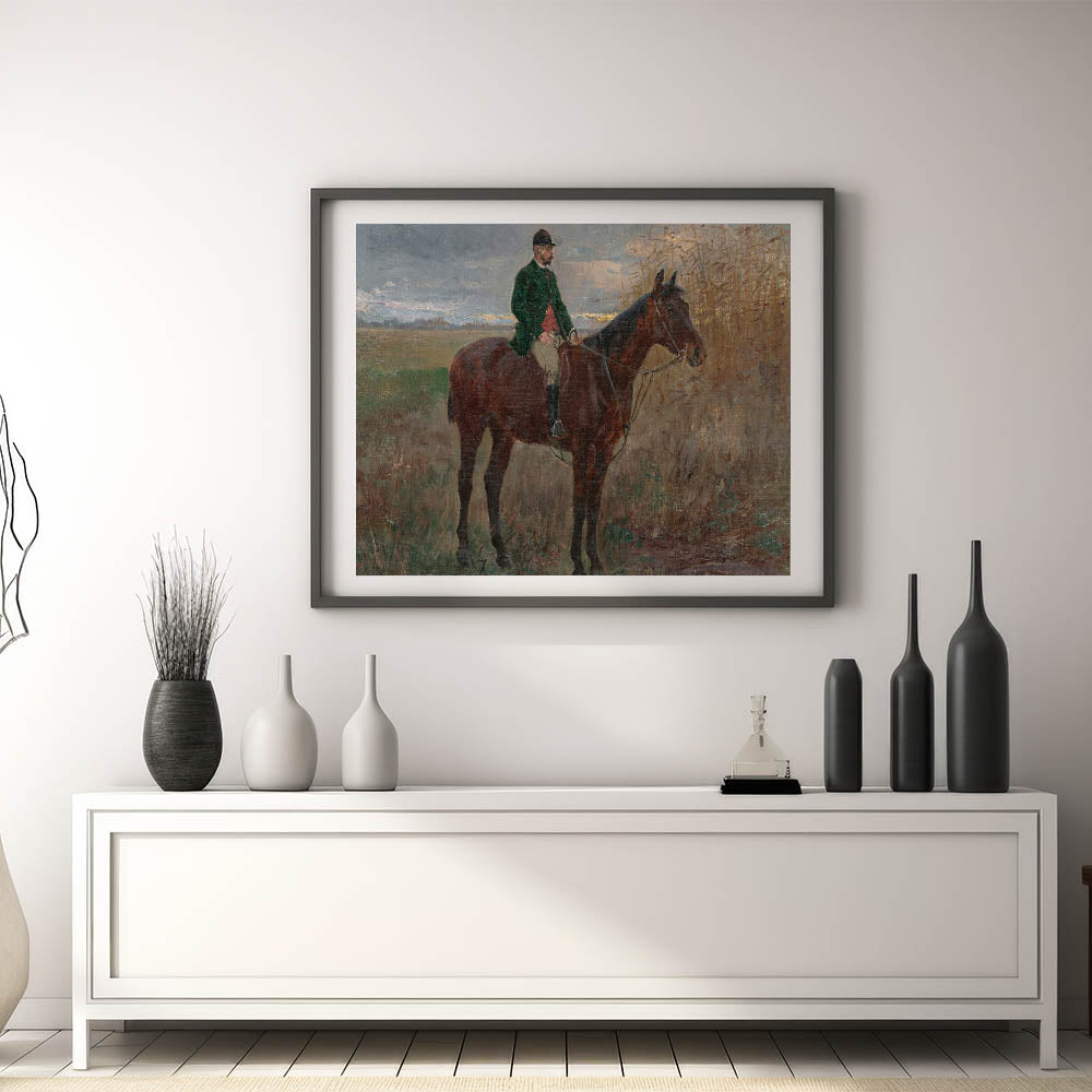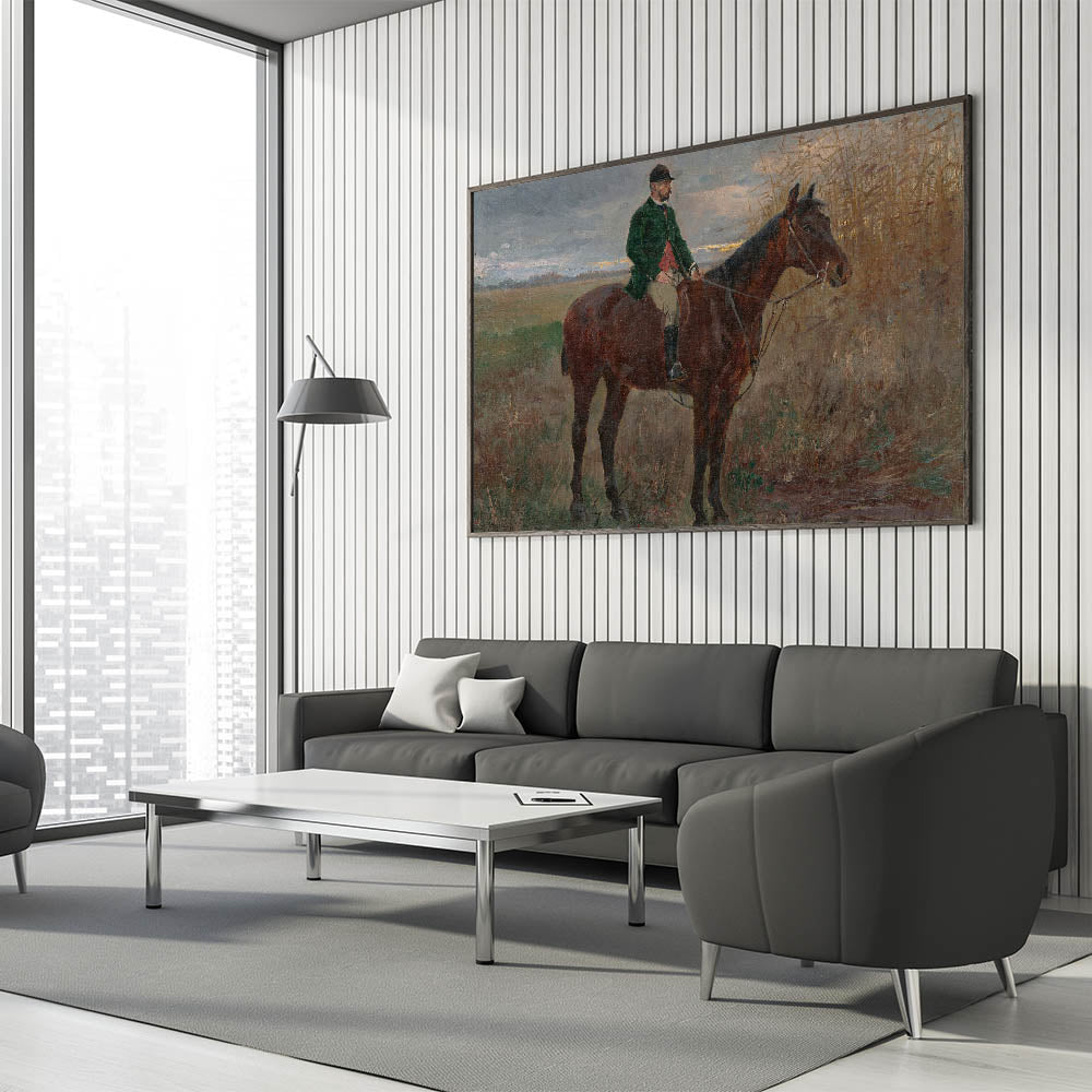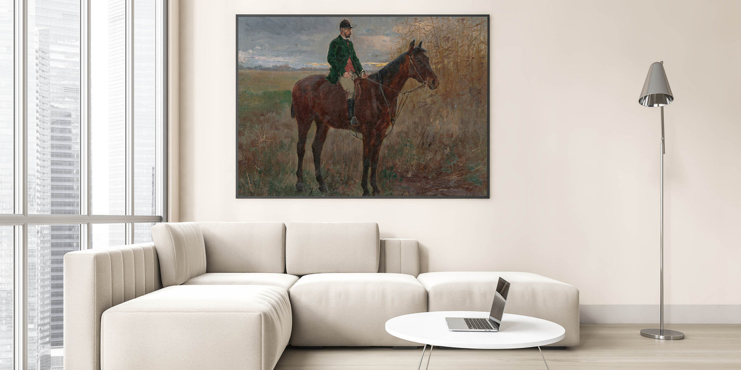 Bring a sense of serenity and heritage to your home with this beautiful modern wall art inspired by László Mednyánszky's "Study of a Rider on a Horse." This timeless piece features a lone rider on horseback set against a peaceful rural backdrop with muted earth tones and soft brushstrokes. The naturalistic composition and subtle details make it a perfect choice for those who appreciate art that captures the beauty of the countryside.