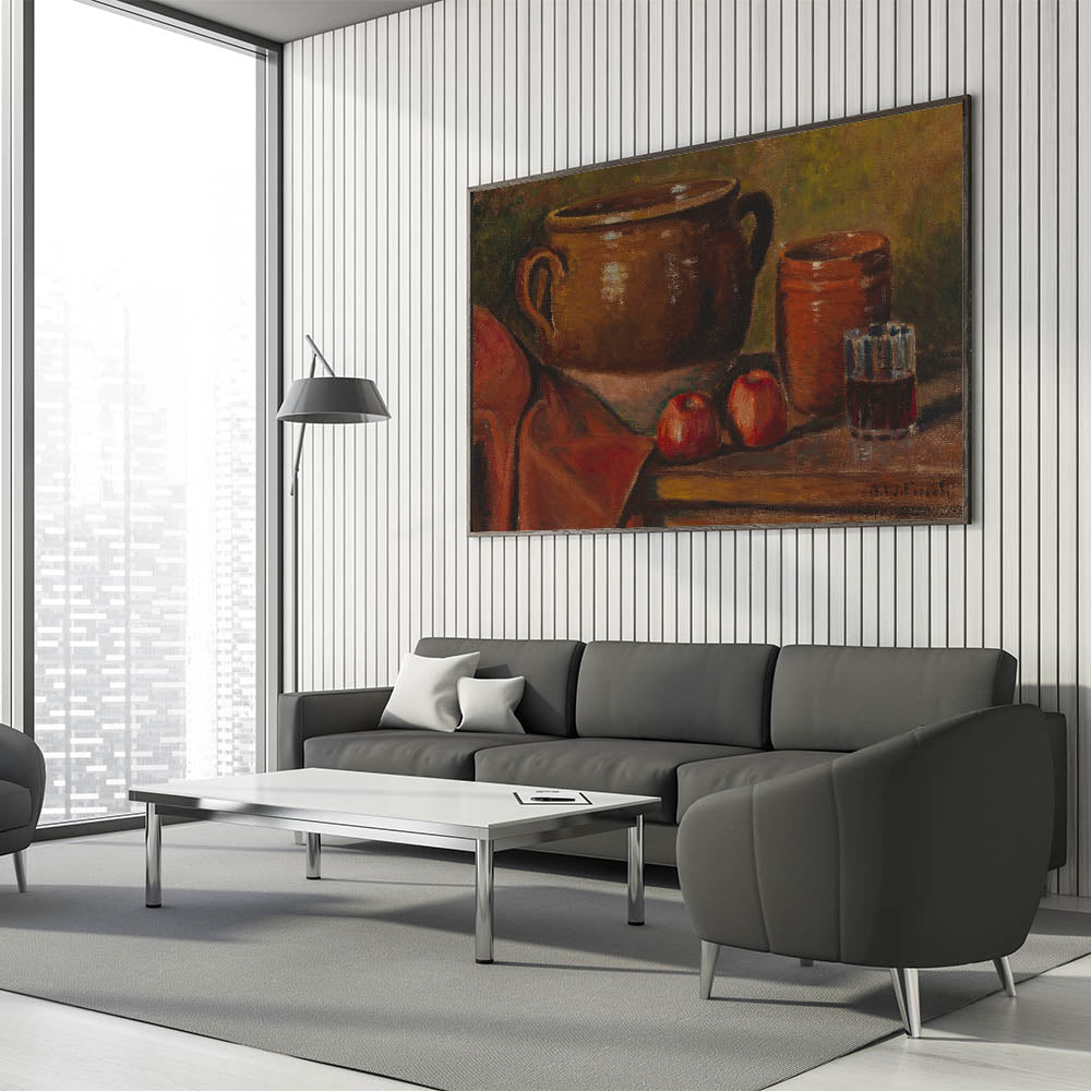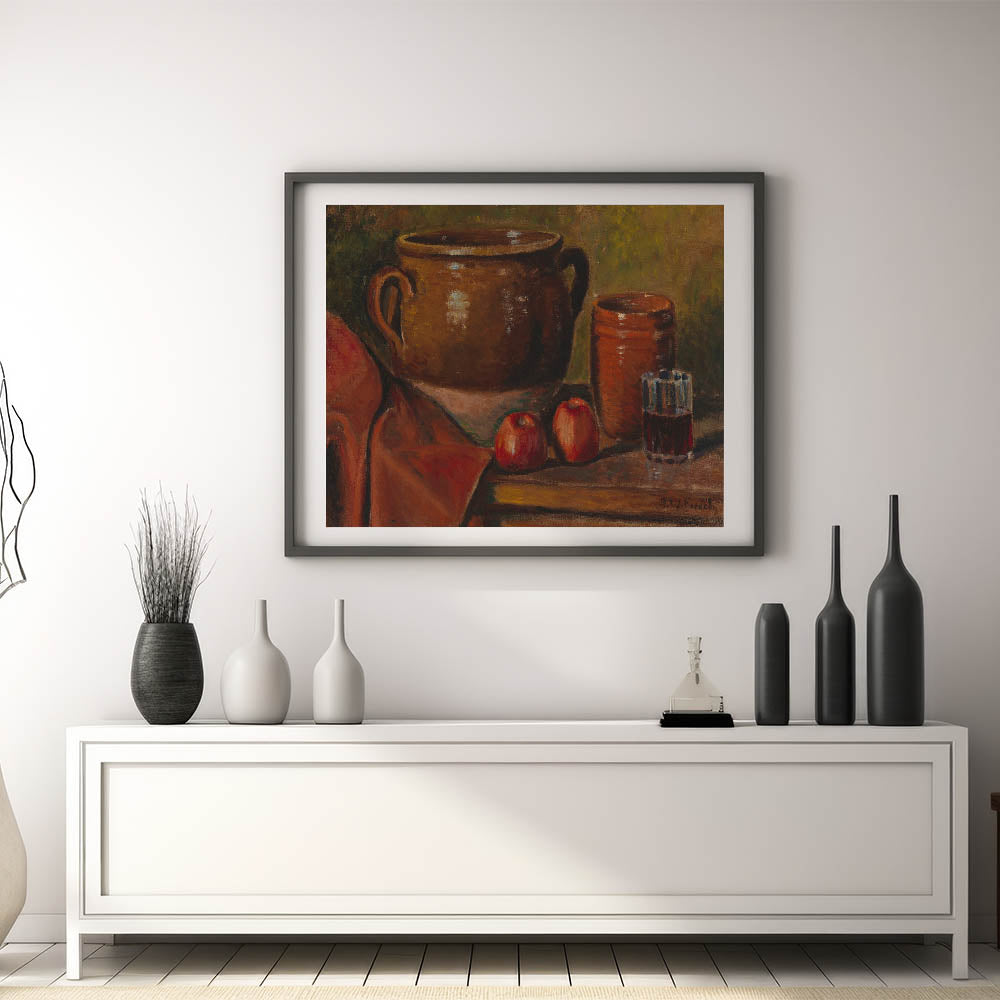 This timeless artwork captures the simplicity and beauty of everyday objects, offering a serene and welcoming vibe to any room. Enhance your decor with this exquisite still-life masterpiece.