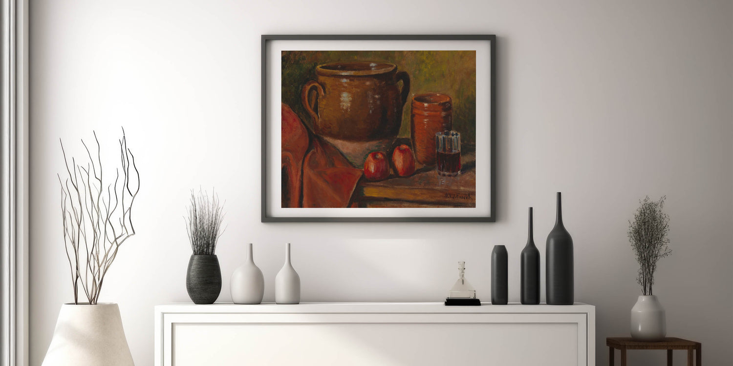 Modern Wall Art - Rustic Still Life with Apples and Pottery