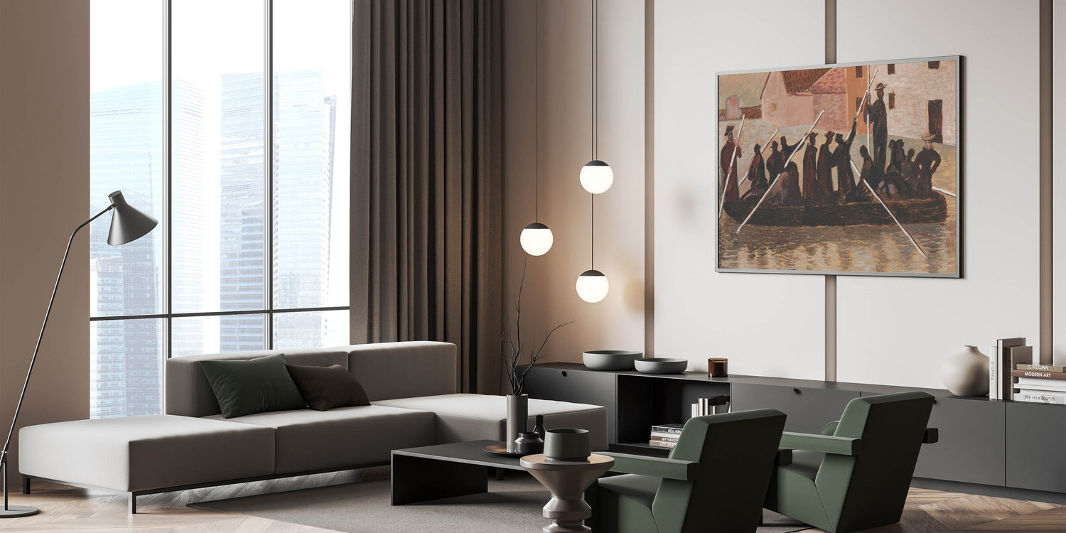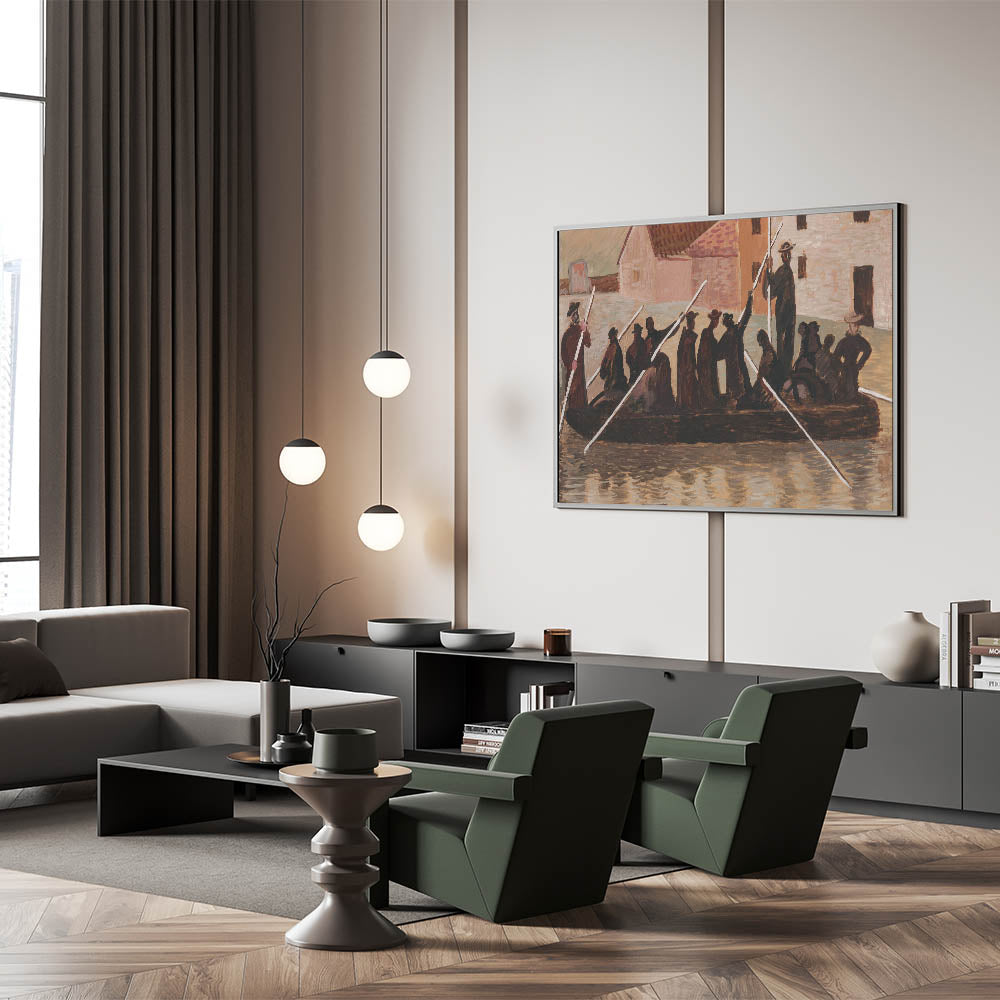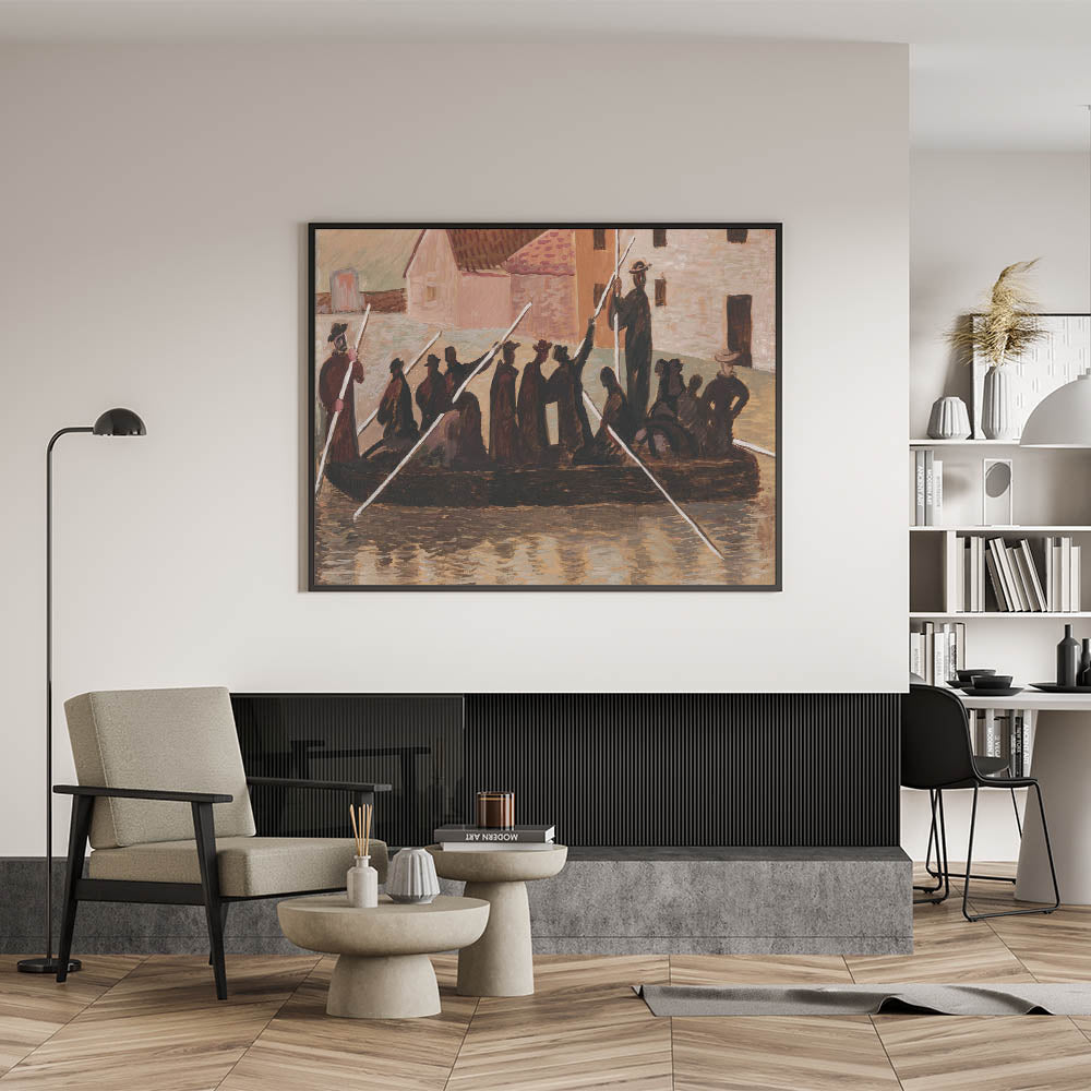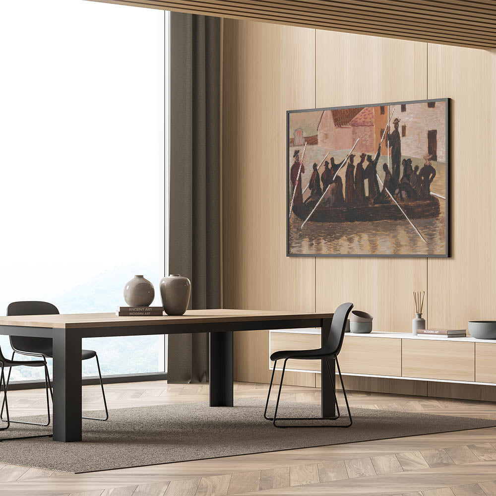 Bring a sense of historical depth and resilience to your space with this Modern Wall Art, inspired by Cyprián Majerník's "The Flood." This artwork captures a group of people navigating turbulent waters, rendered in earthy tones of brown and beige. The rustic style and timeless theme make this piece ideal for those who appreciate unique modern art that conveys strength and unity.