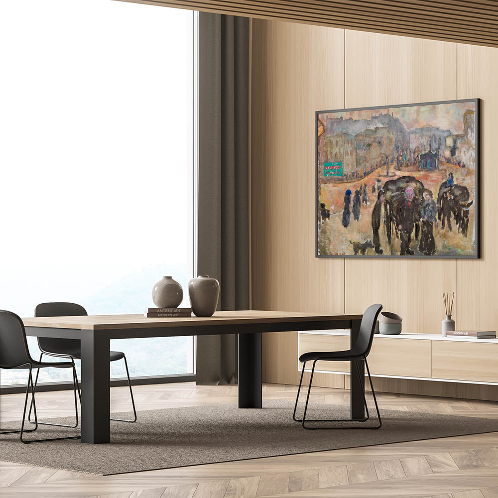 Bring timeless charm and nuanced emotion to your walls with this modern wall art, inspired by Pierre Bonnard’s The Ragpickers (1909). This expressive painting captures a bustling urban scene filled with dynamic figures and subtle interactions, depicted through muted earth tones and soft pastels. The hazy backdrop and flowing brushstrokes create a nostalgic ambiance, perfect for lovers of contemporary art pieces with a historical and artistic edge.