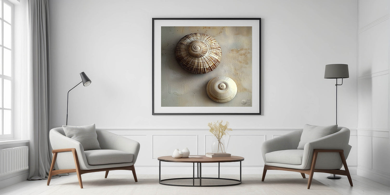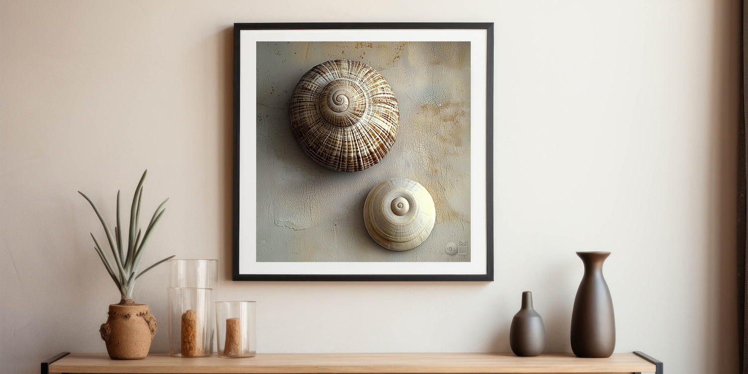Celebrate the beauty of coastal life with this stunning seashell close-up wall art. Featuring intricately detailed textures and warm, earthy tones, this artwork captures the organic charm of natural elements. The soothing palette and spiral design evoke a sense of calm, making it perfect for beach-inspired or modern interiors.