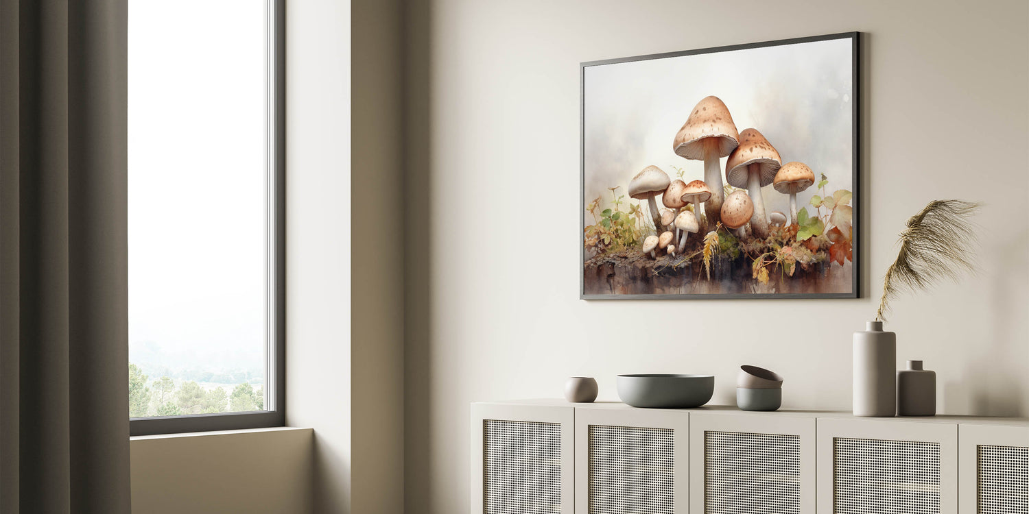 Bring a touch of serene, woodland beauty into your home with this mushroom artwork. It’s ideal for creating a calm, natural atmosphere in any room, whether it’s a living area, bedroom, or office space. This botanical mushroom print is not just wall decor; it’s a piece of art that celebrates the delicate beauty of nature.