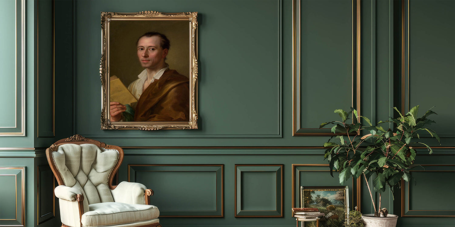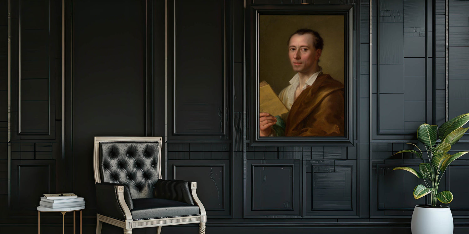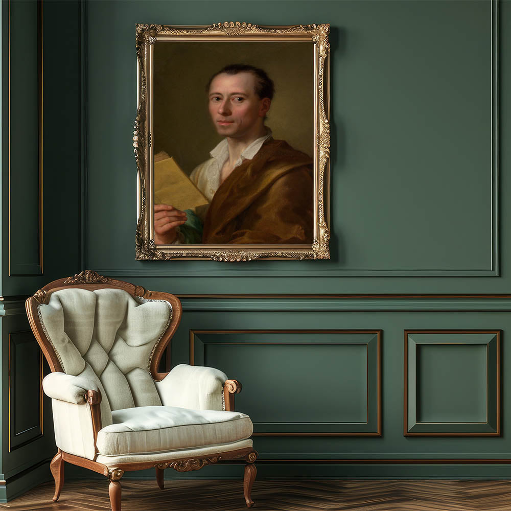 Celebrate the timeless elegance of Neoclassical art with this portrait of Johann Joachim Winckelmann by Anton Raphael Mengs. Known as the father of modern art history, Winckelmann's influence on the Neoclassical movement is profound. This artwork captures his intellectual poise, symbolizing the revival of Greek and Roman ideals in the 18th century. The painting’s muted color palette and attention to detail make it a sophisticated addition to any classical art collection.