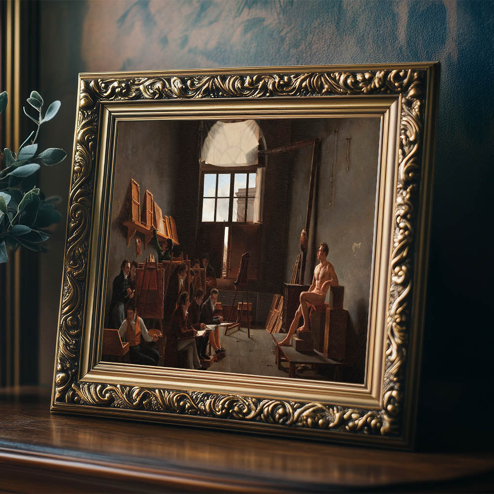 - Authentic Atelier Scene: Offers a historical view of Jacques-Louis David’s studio, depicting the practices of classical art instruction.