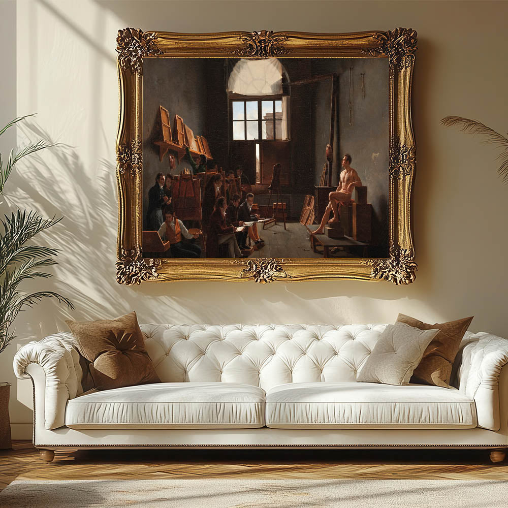 Bring a piece of art history into your home with this depiction of a Neoclassical atelier. This print not only serves as an inspiring piece but also connects viewers to the heritage and ideals of classical art.