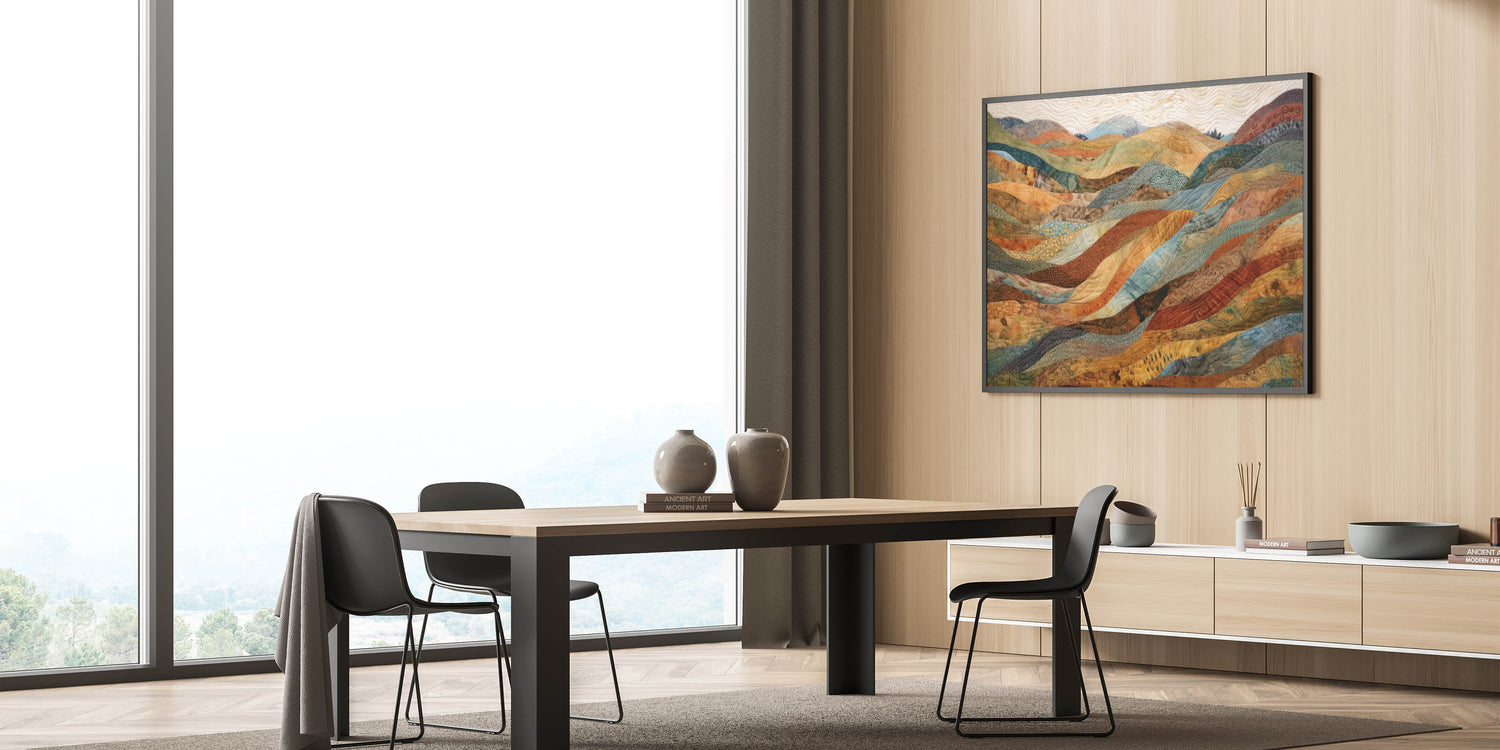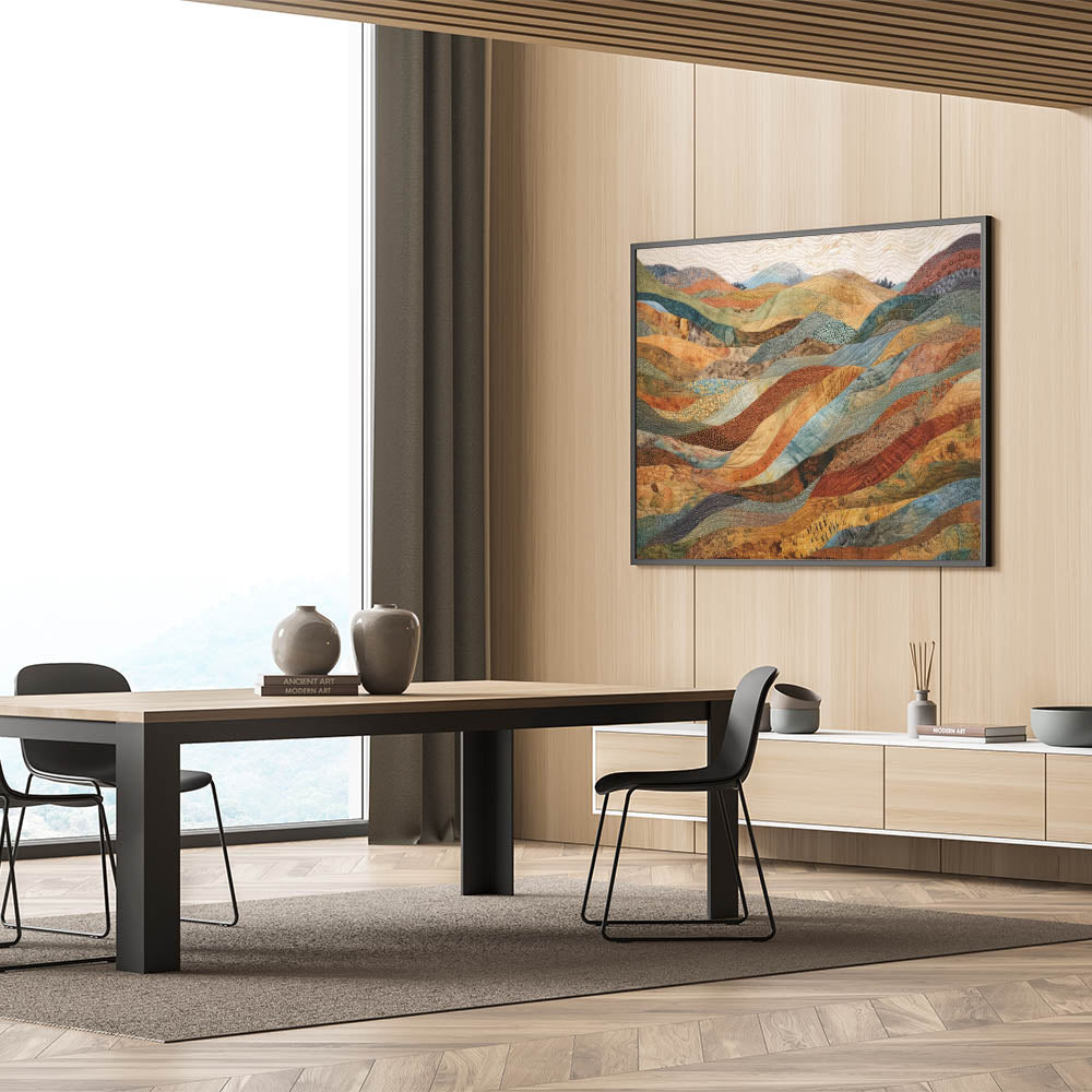 Quilted Autumn Hills Wall Art - Warm Fall Landscape Decor for Home
