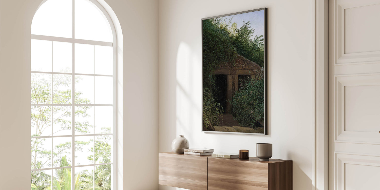 Step into the mysterious beauty of Romanticism style wall art with "An Overgrown Mineshaft" by Carl Gustav Carus. This evocative painting highlights the Romantic era's fascination with untamed nature and hidden stories, blending lush greenery with a weathered, abandoned mineshaft. The interplay of light and shadow captures an emotional and poetic connection to the natural world, making this piece a quintessential example of classic art of the Romantic era.