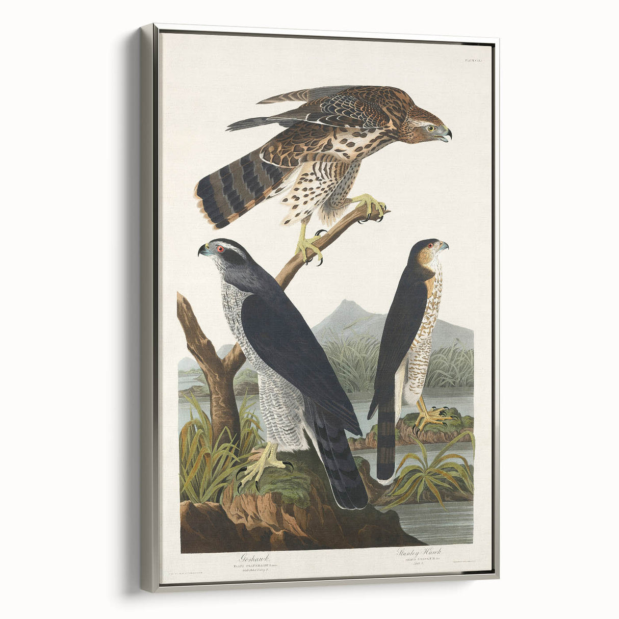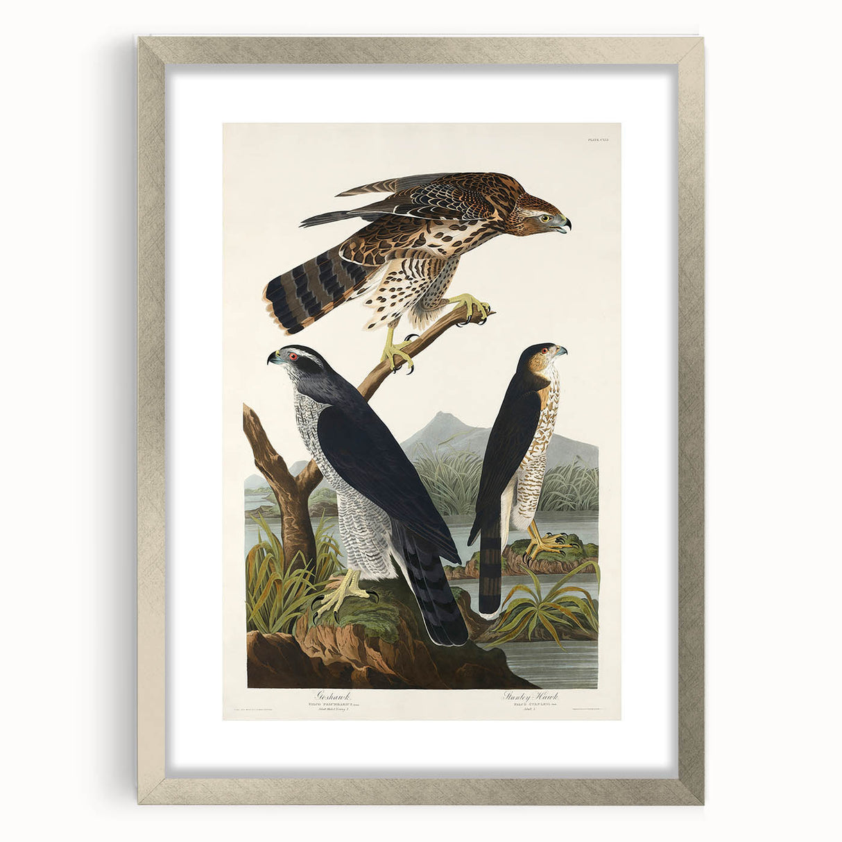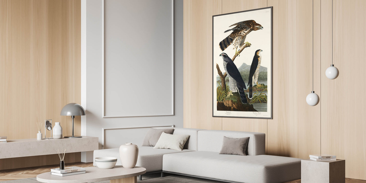 Bring the splendor of nature and the elegance of the Romantic era into your home with this stunning piece, "Goshawk and Stanley Hawk," from John James Audubon's Birds of America (1827). This artwork embodies the Romanticism style, showcasing emotional landscapes and vivid wildlife portraits that transcend time.