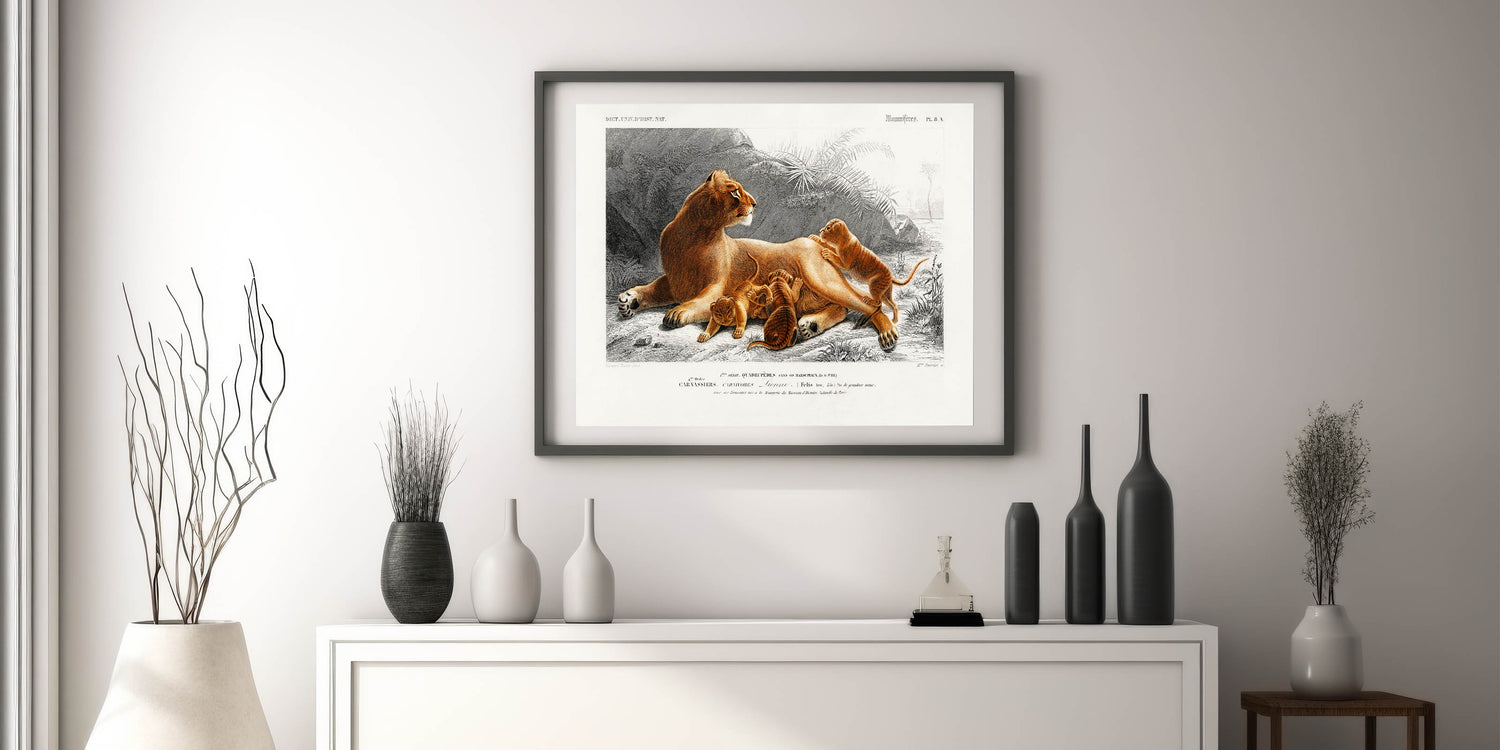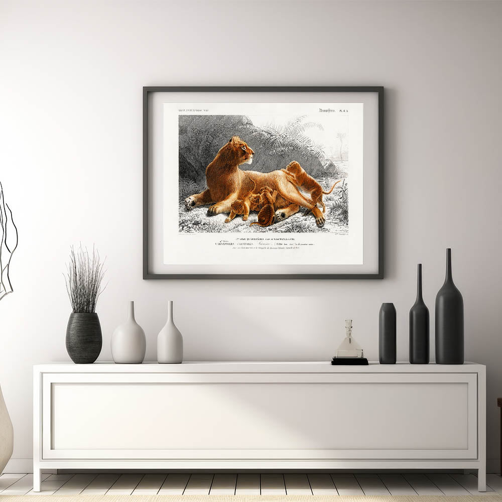 Romanticism Art: Lioness with Cubs by D’Orbigny - Wildlife Canvas