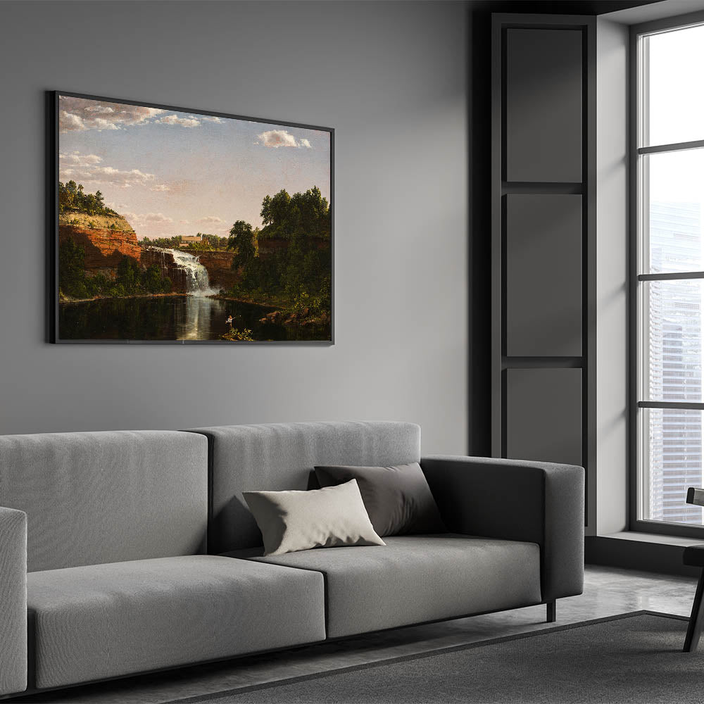 Capture the majestic beauty of nature with Frederic Edwin Church’s Lower Falls, Rochester. This Romanticism masterpiece depicts a breathtaking waterfall surrounded by towering cliffs and lush greenery, perfectly balancing the serenity of nature with its untamed power. The detailed composition, with its vibrant greens, earthy browns, and clear blue sky, reflects Church’s ability to celebrate the grandeur of the natural world.