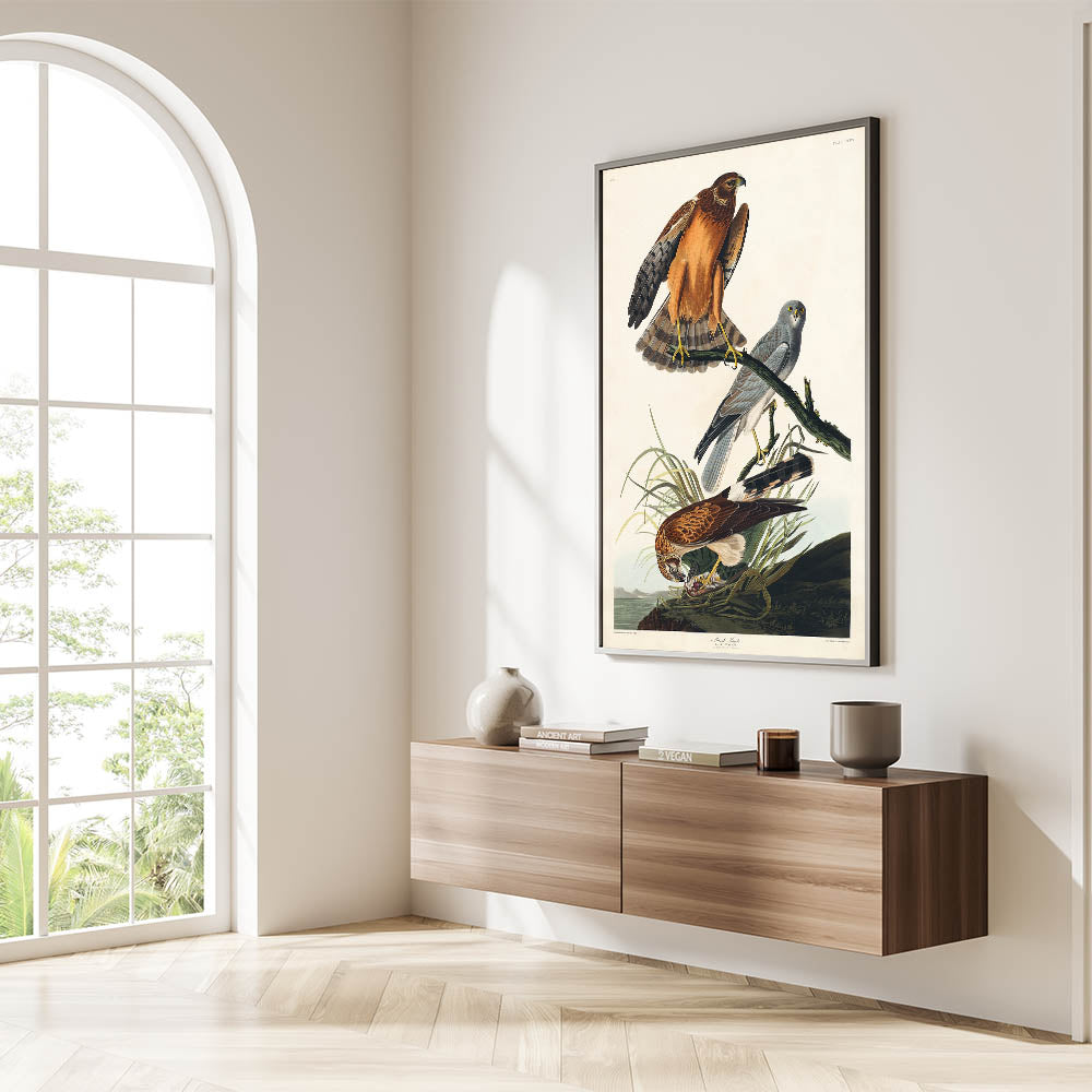 Bring the essence of Romanticism to your home with this captivating art piece, Marsh Hawk from Birds of America (1827) by John James Audubon. This masterpiece showcases the delicate balance between nature's majesty and humanity's admiration for it. The intricate details of the hawks in their natural habitat evoke emotional landscapes and portraits, hallmarks of Romanticism style wall art.