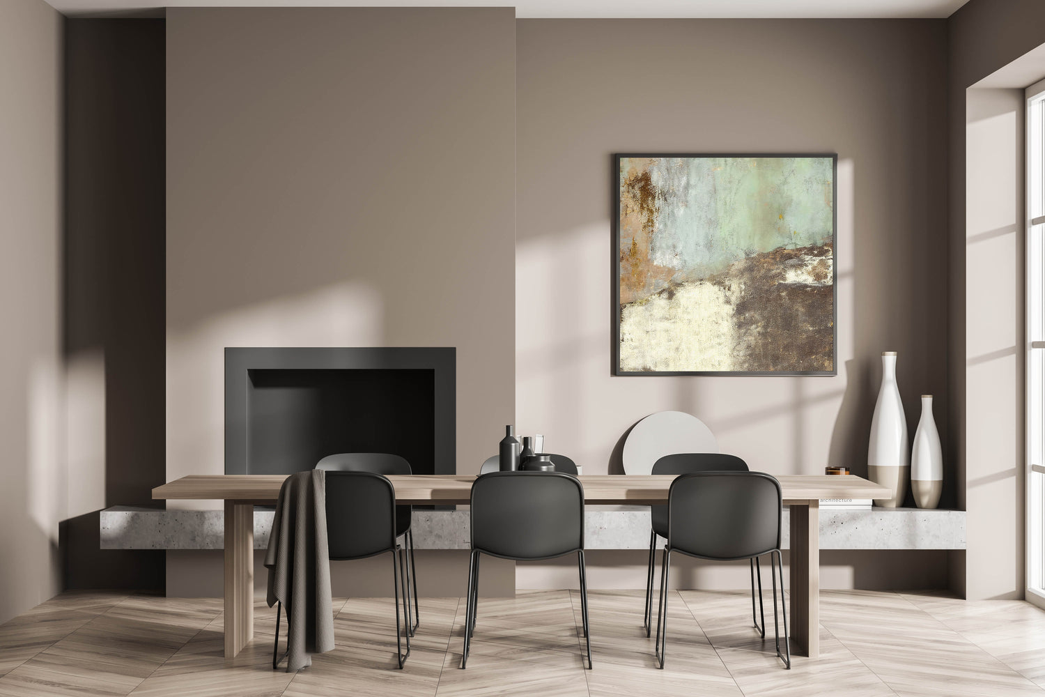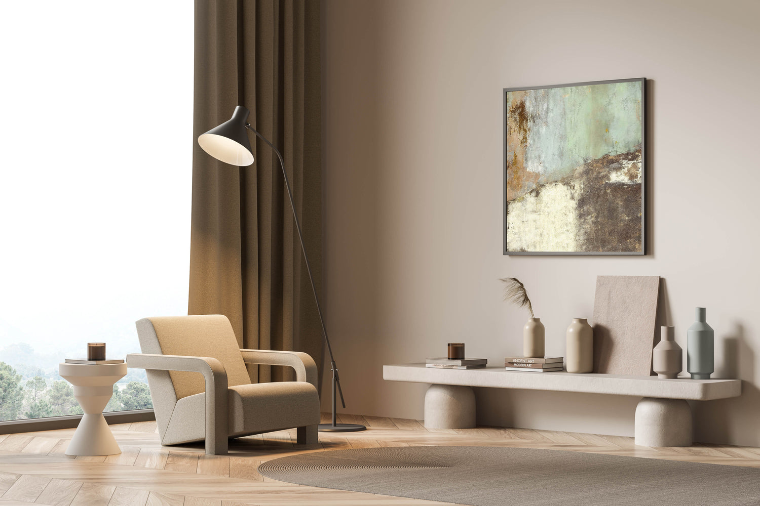 This rustic abstract texture canvas adds a natural, organic element to your decor. Its blend of muted green and brown tones with an artistic distressed finish makes it a perfect fit for those who appreciate a vintage, earthy aesthetic.