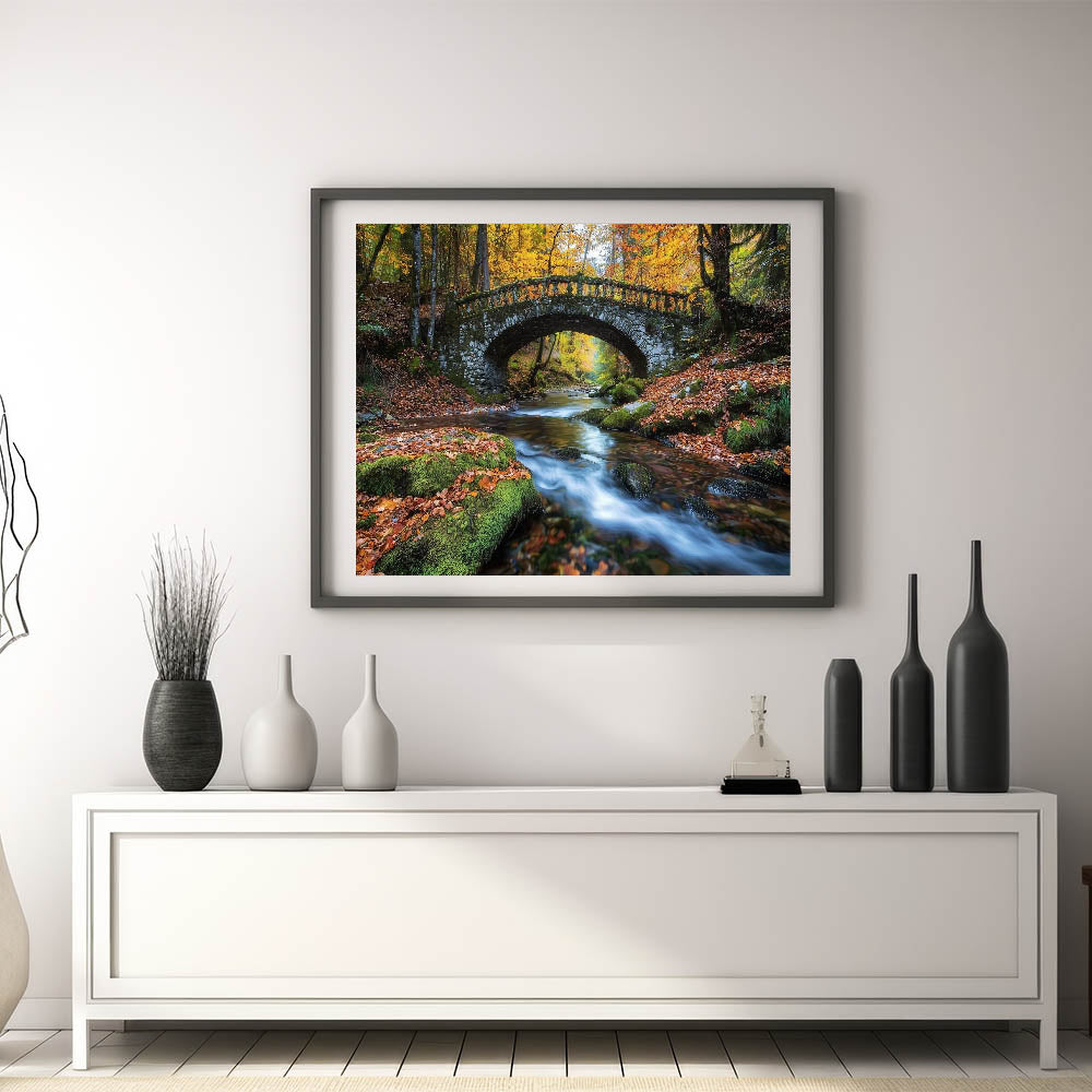 Perfect for nature lovers and fans of serene landscapes, this autumn bridge print blends the beauty of the season with timeless architectural elegance. Whether you're creating a cozy, rustic vibe or adding a touch of nature to a modern space, this artwork is an excellent choice to bring warmth and tranquility into your home.