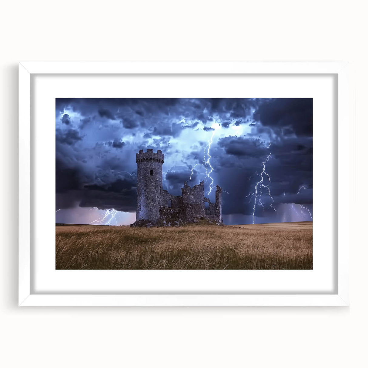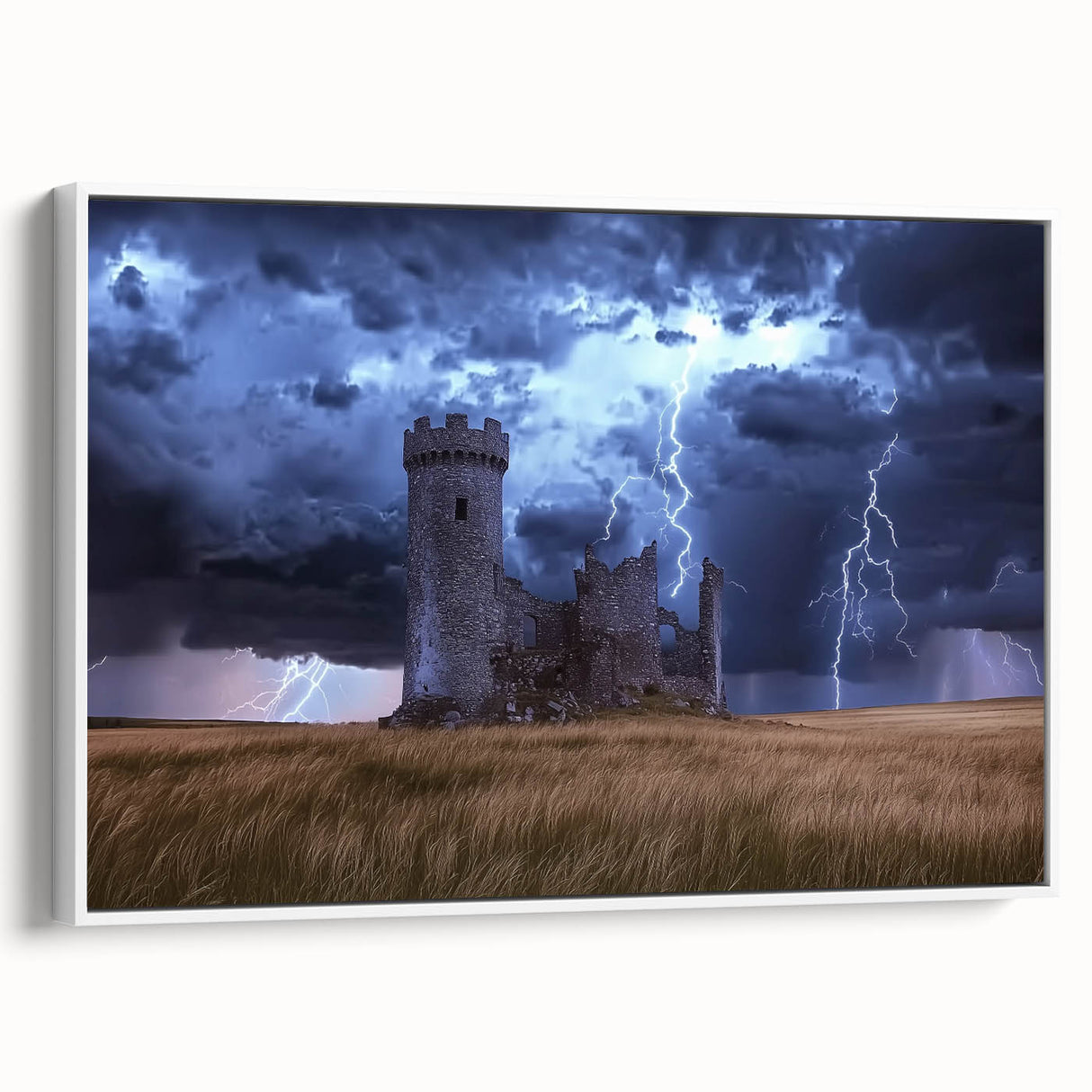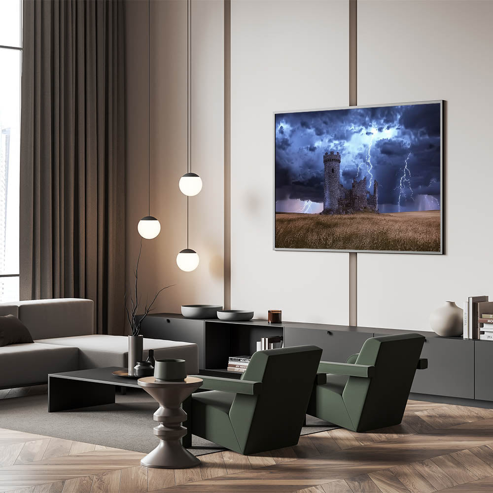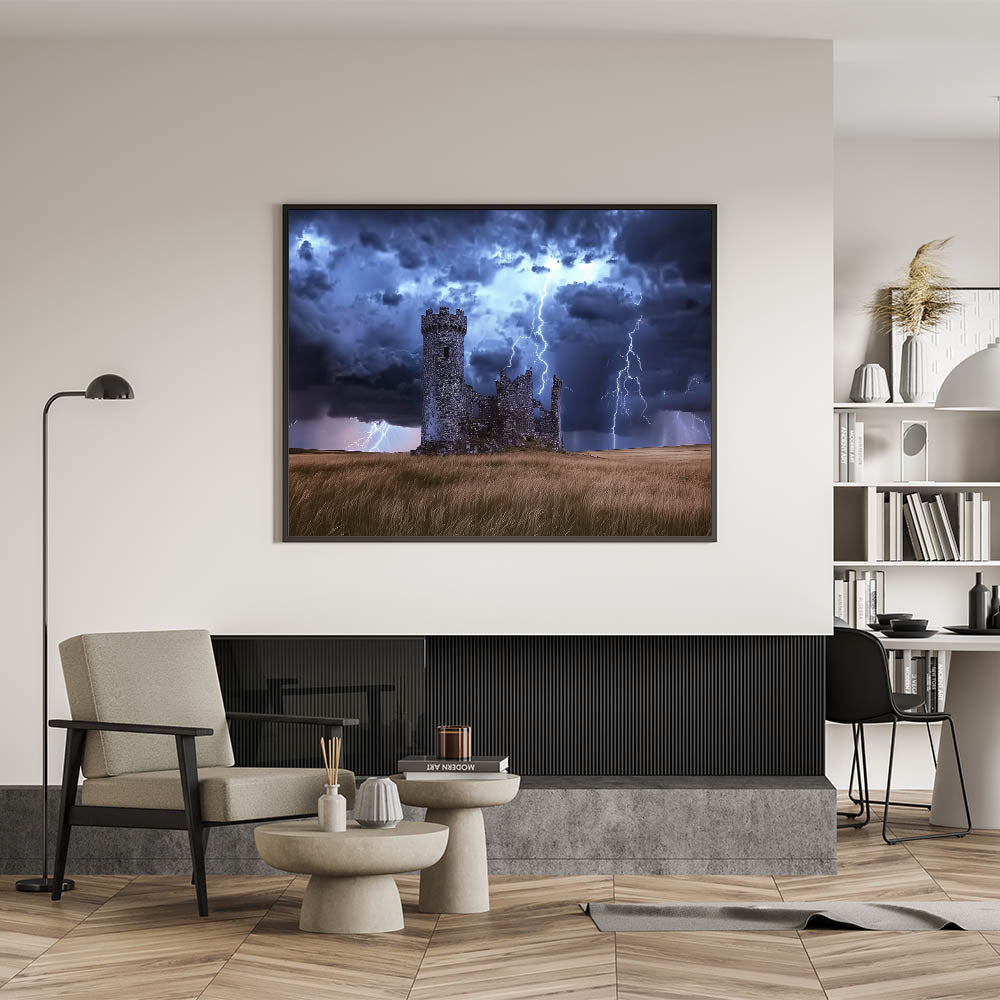 Stormy Ruins Castle Wall Art – Dramatic Lightning and Medieval Charm