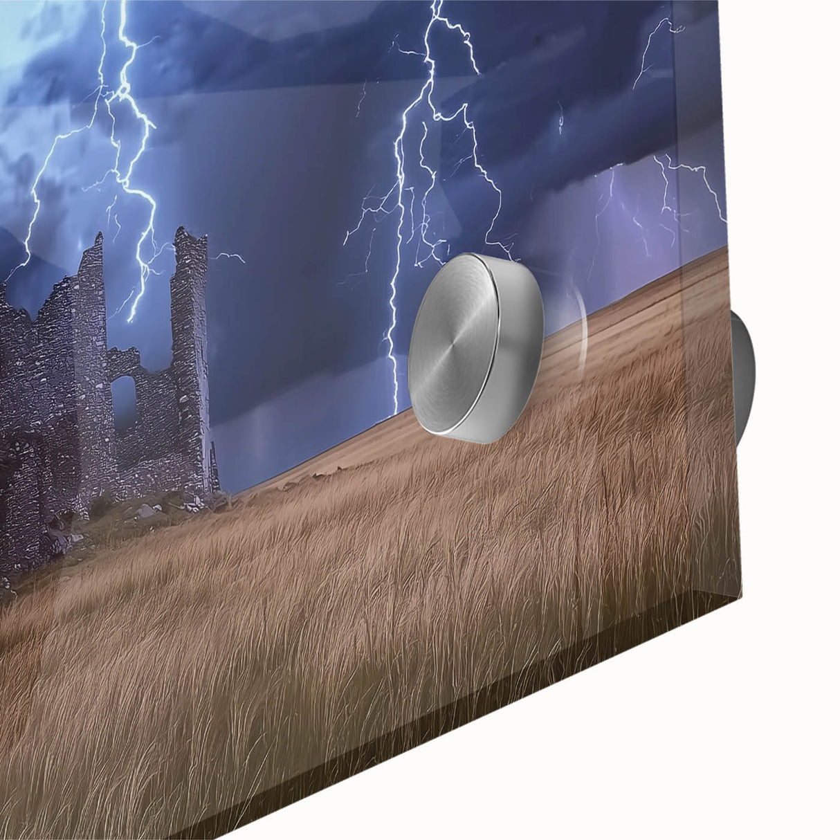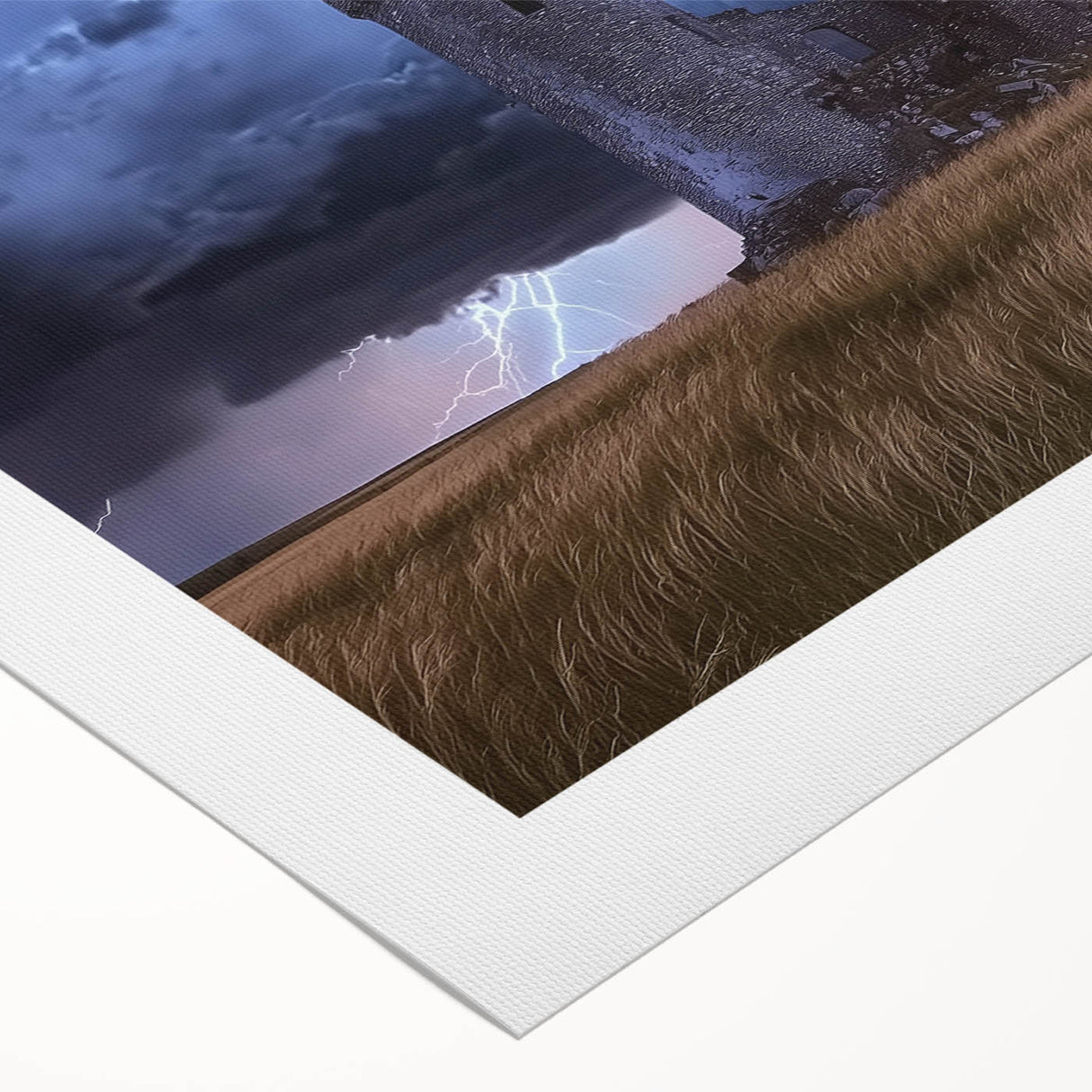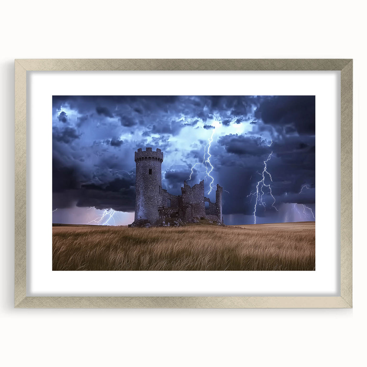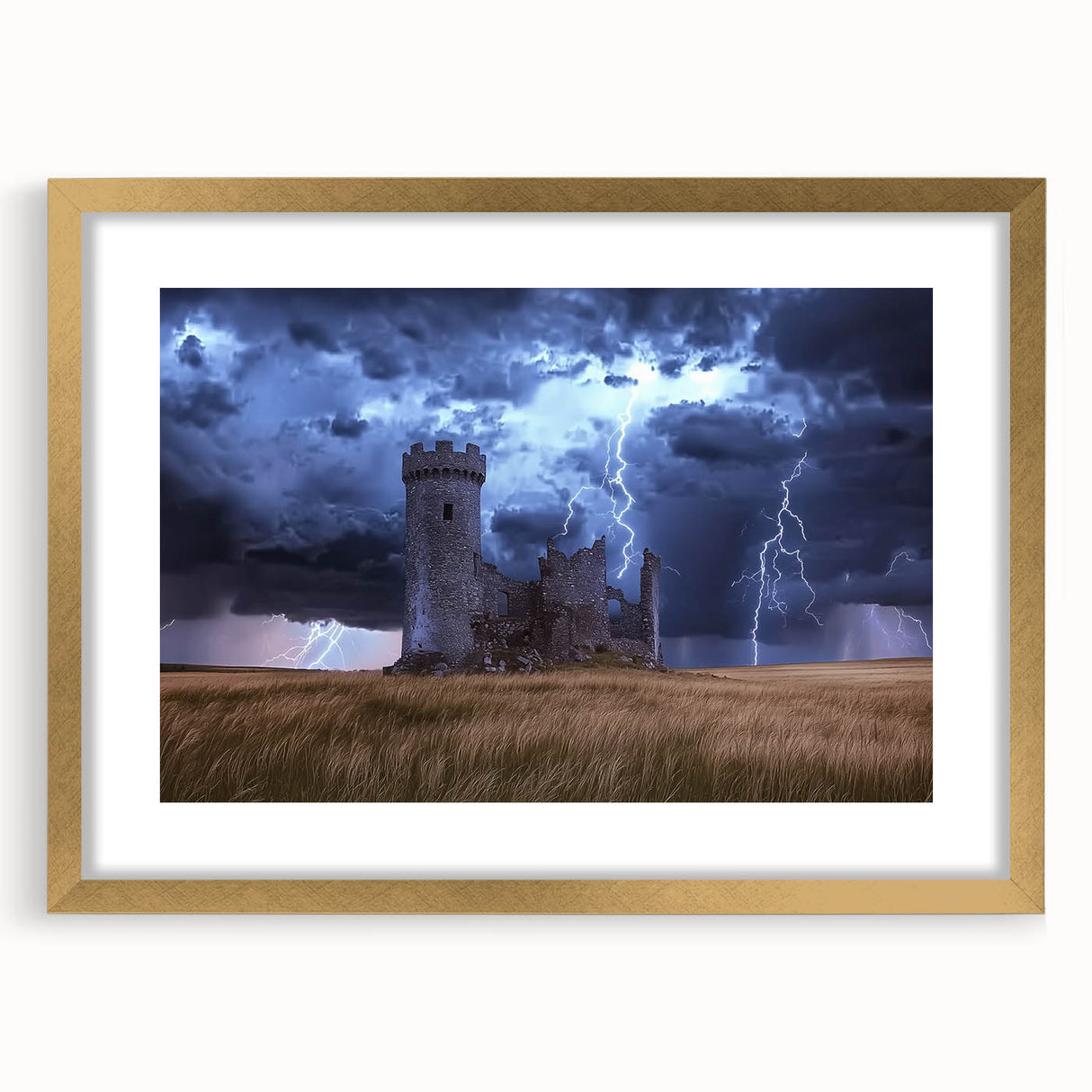 Stormy Ruins Castle Wall Art – Dramatic Lightning and Medieval Charm