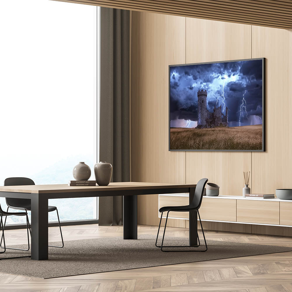 Transform your living room, office, or bedroom into a gallery of historic charm with this unique castle artwork. The combination of medieval architecture and stormy skies brings a timeless and dramatic aesthetic to your space. Add this unforgettable piece to your collection today!