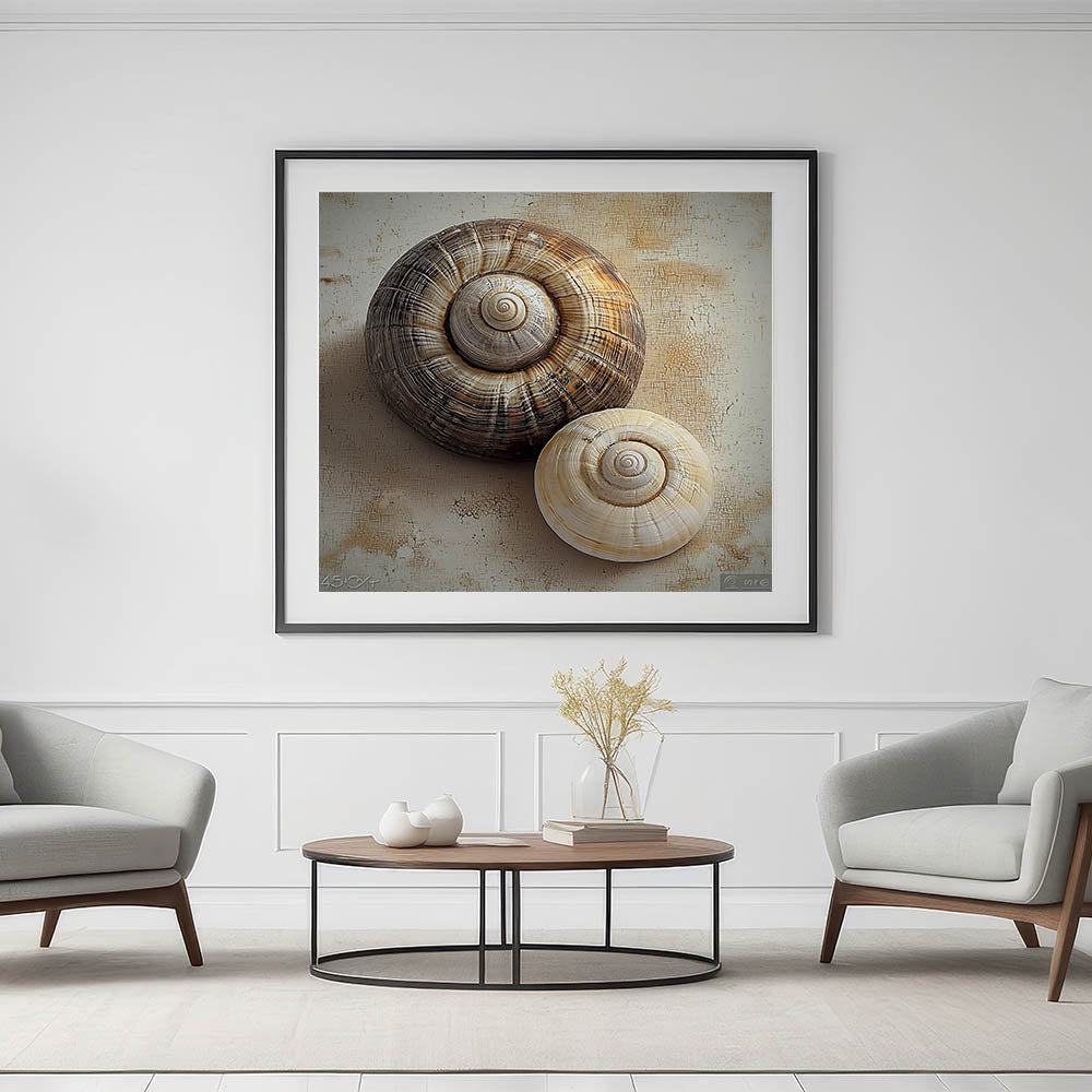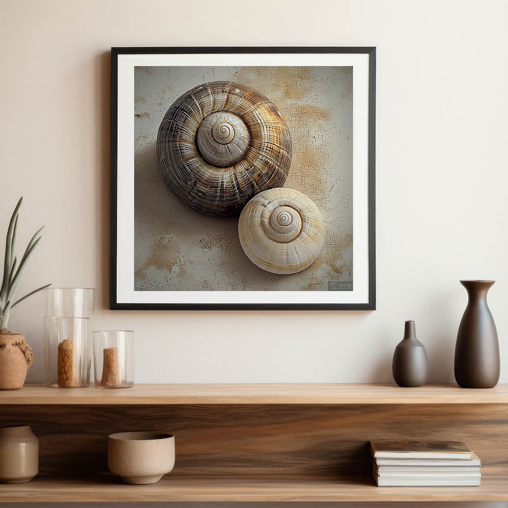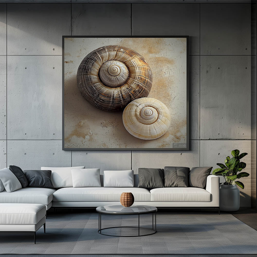 Infuse your home with the timeless beauty of natural textures with this Spiral Shells wall art. Featuring two intricately detailed shells in earthy beige and brown tones, this artwork celebrates the elegance of organic forms. The subtle textured background adds depth and character, making it a perfect addition to modern, coastal, or rustic decor themes.