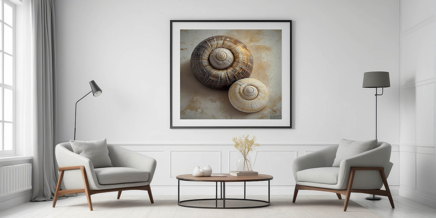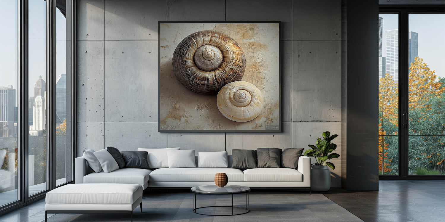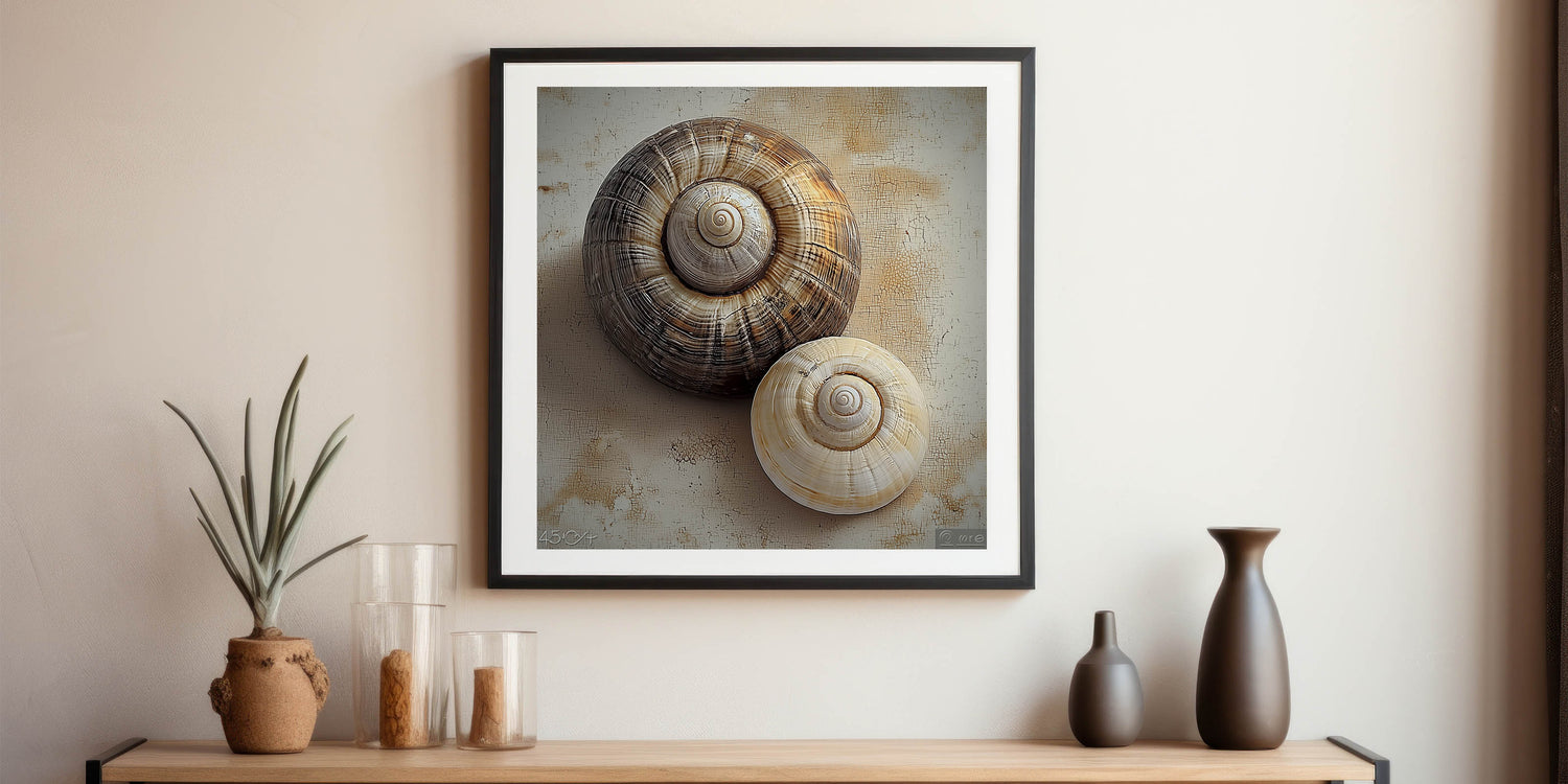 Infuse your home with the timeless beauty of natural textures with this Spiral Shells wall art. Featuring two intricately detailed shells in earthy beige and brown tones, this artwork celebrates the elegance of organic forms. The subtle textured background adds depth and character, making it a perfect addition to modern, coastal, or rustic decor themes.