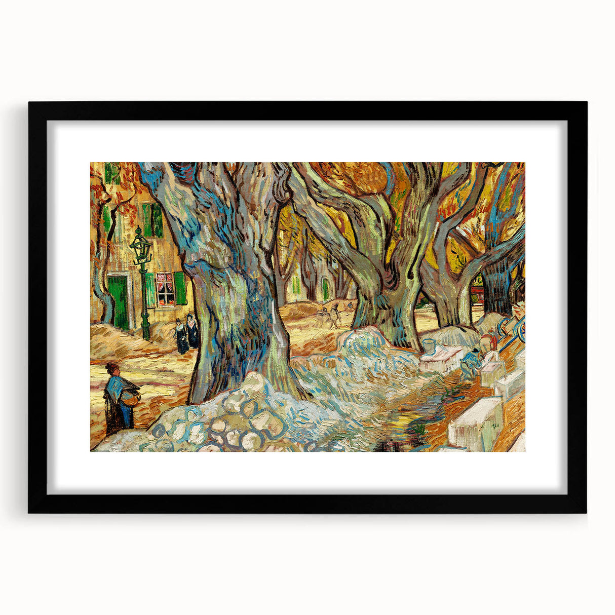 Immerse yourself in the beauty of Vincent van Gogh’s "The Large Plane Trees." This remarkable artwork captures a bustling street scene surrounded by towering plane trees with intricate bark patterns and vibrant autumnal tones. Van Gogh’s signature brushstrokes bring movement and life to this stunning Impressionist masterpiece, making it an ideal addition to your Van Gogh art collection.