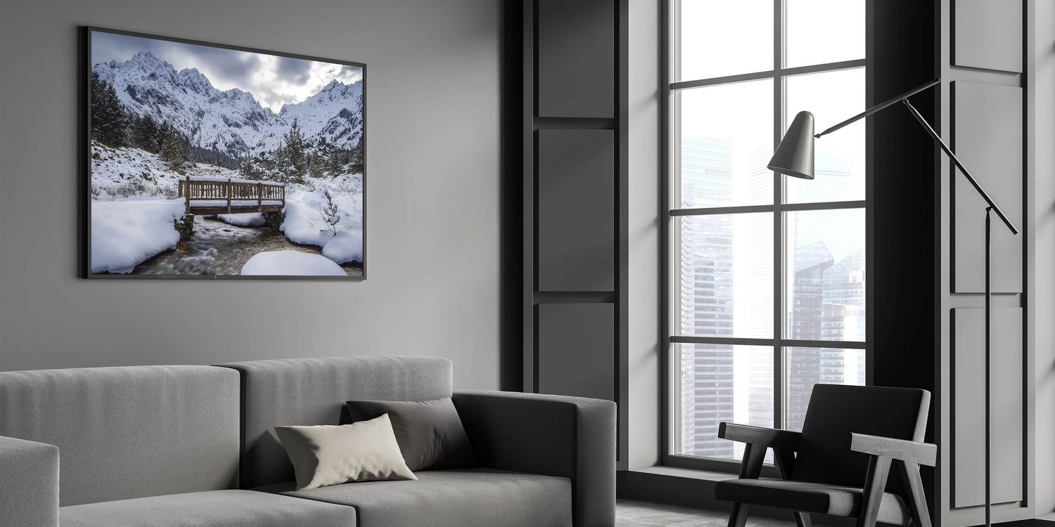 Winter Wonderland Bridge Art - Snowy Mountain Photography Print