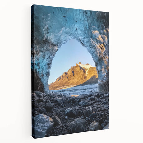 • Stretched canvas artwork depicting a serene landscape with intricate cave formations and vibrant colors, ideal for enhancing home decor with a natural aesthetic.