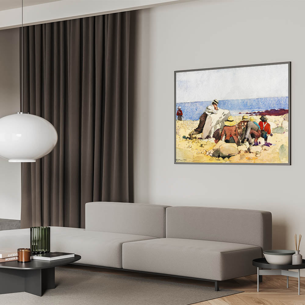 Step back in time with A Clam Bake (1873) by Winslow Homer, capturing a lively beach scene filled with figures engaged in the timeless tradition of a clam bake. This watercolor painting beautifully portrays a relaxed day by the sea, with Homer’s signature attention to light and detail that brings the scene to life. It’s an excellent piece for anyone looking to add a historical yet casual vibe to their space.