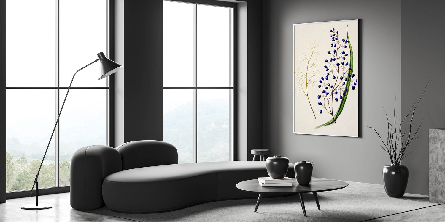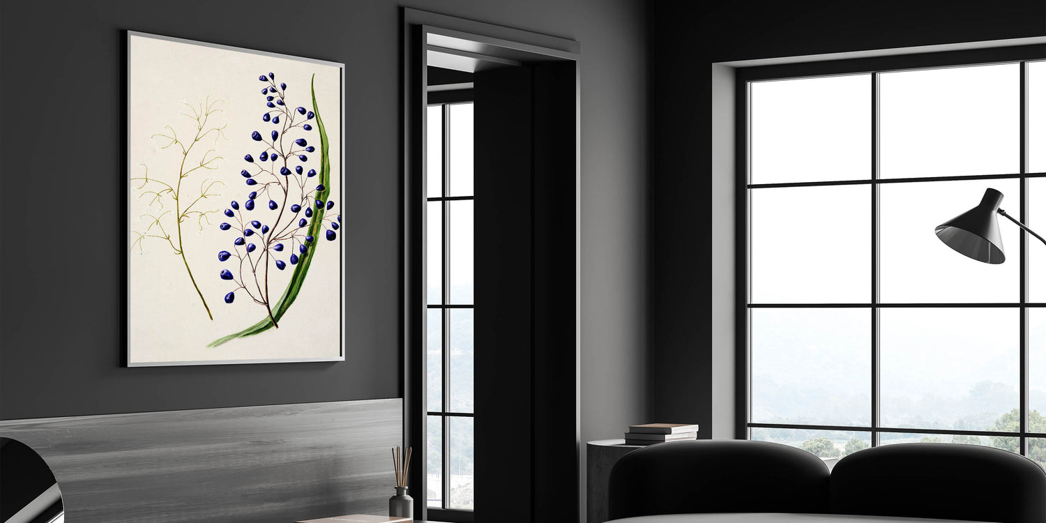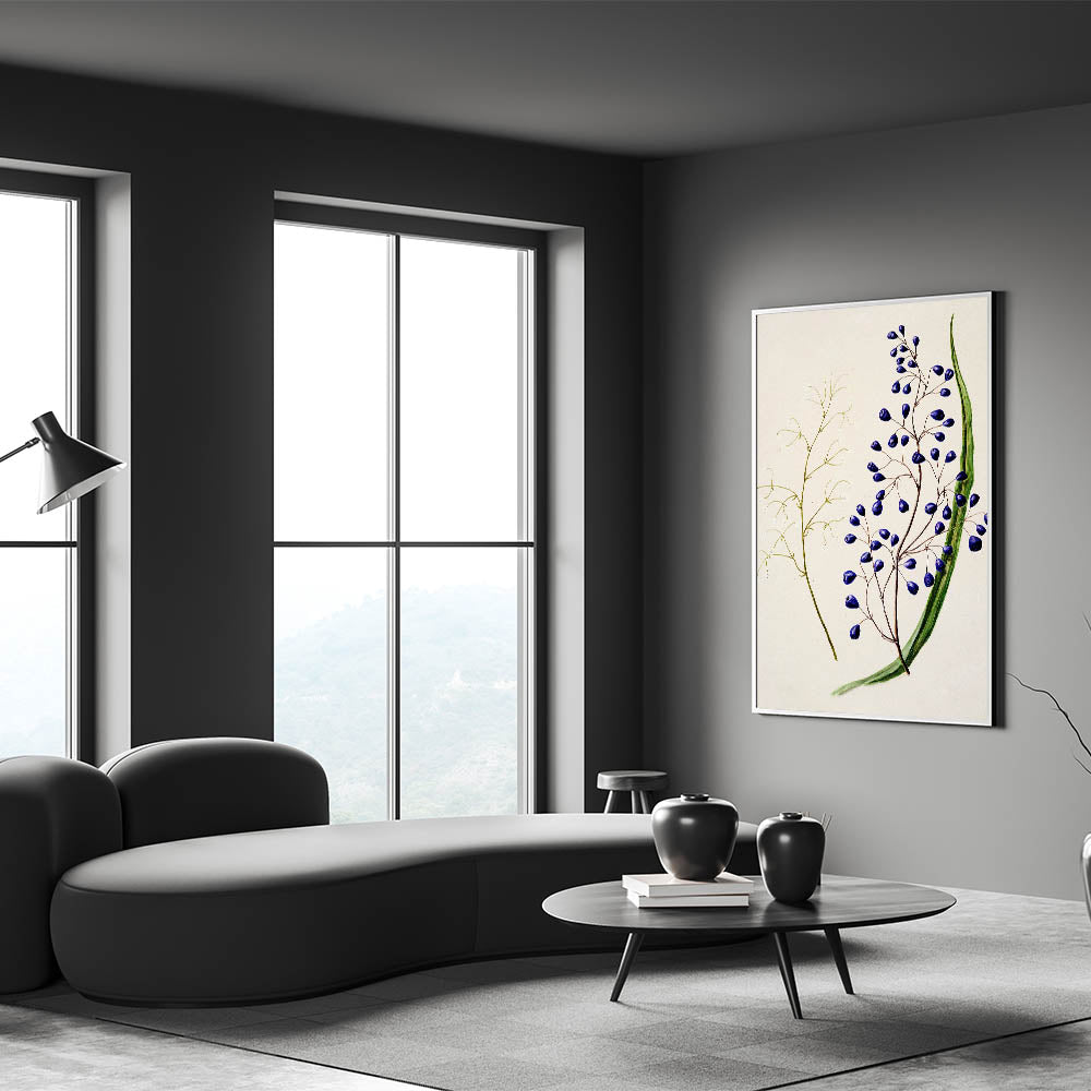 Add a touch of nature’s elegance with our "Botanical Realism Art Print," featuring the delicate and vibrant Ink Plant (Dianella Intermedia) by Sarah Featon. This exquisite illustration captures the rich blue berries and slender leaves with remarkable accuracy, making it a beautiful and educational addition for botanical enthusiasts and art collectors alike.
