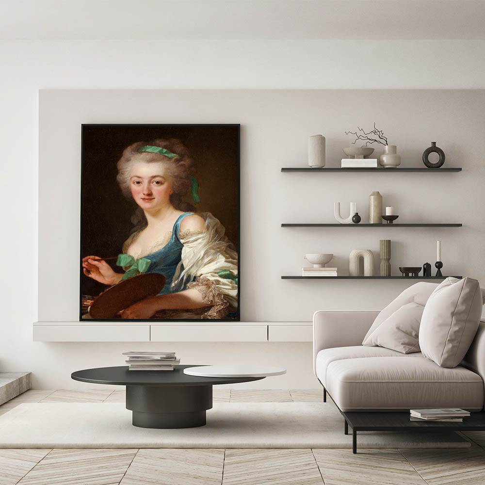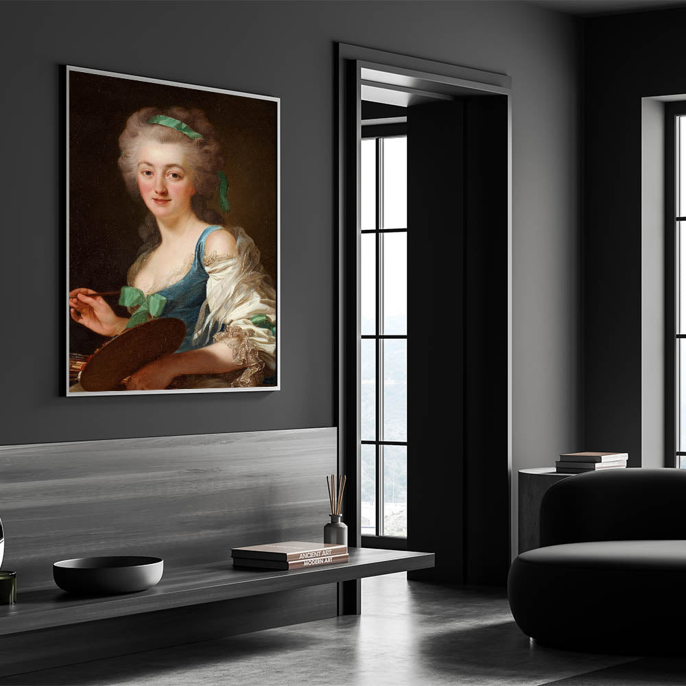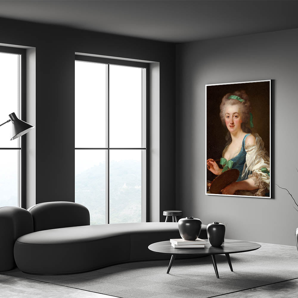 Celebrate the elegance and artistry of the Romantic era with this stunning portrait of Anne Vallayer-Coster, a renowned painter of her time. This captivating artwork reflects the Romanticism style, highlighting emotional depth, intricate details, and a delicate play of light and shadow. The soft yet vibrant palette and lifelike expression make this a timeless piece for art enthusiasts.