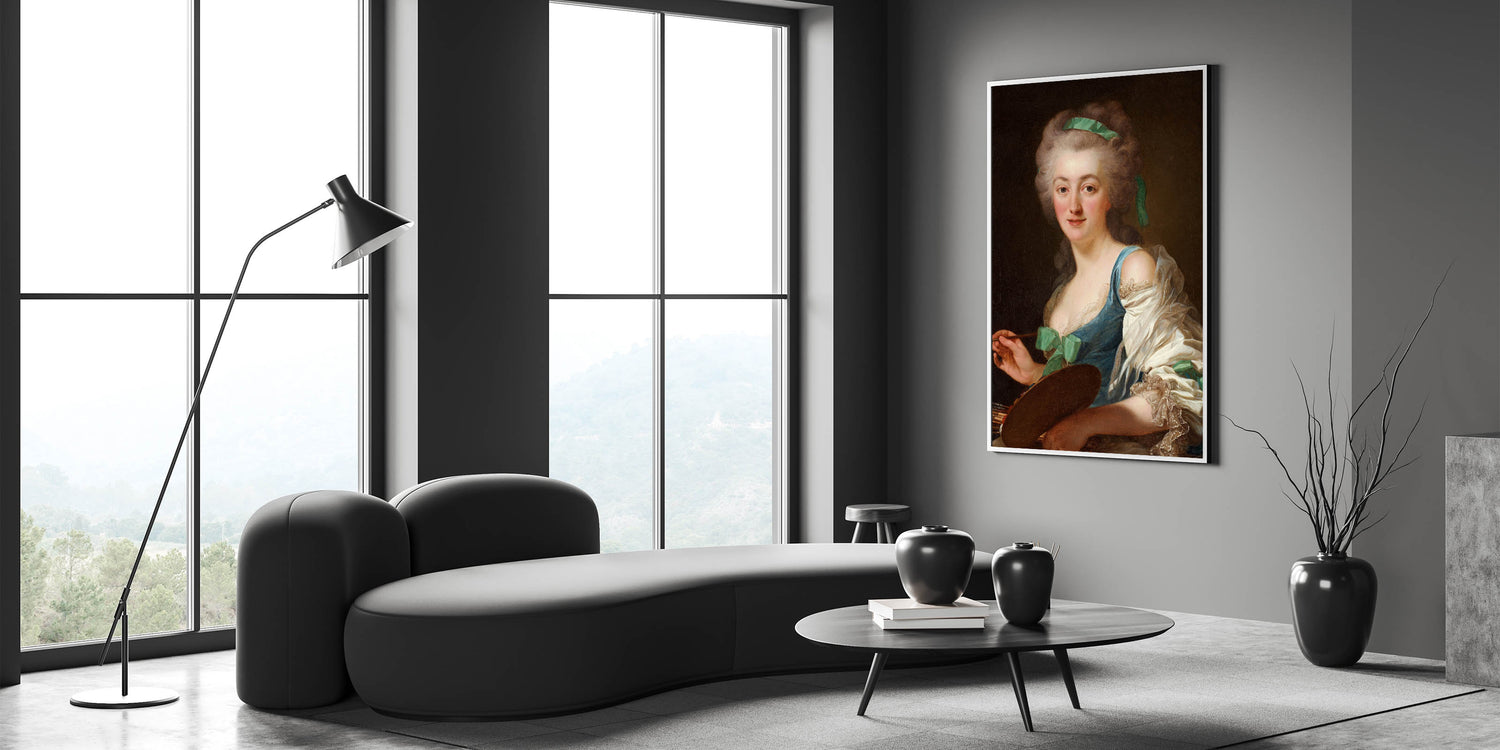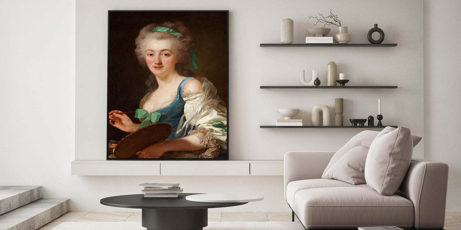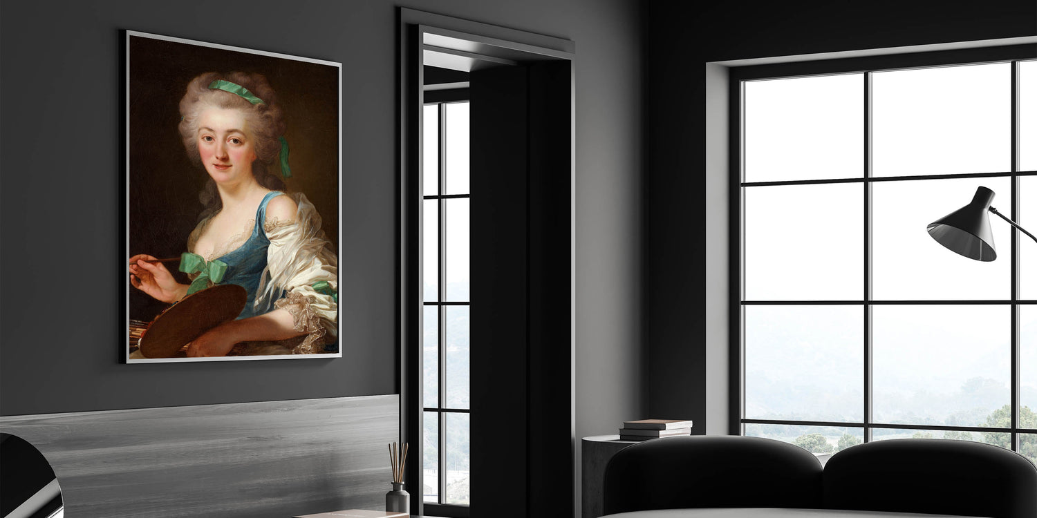 Celebrate the elegance and artistry of the Romantic era with this stunning portrait of Anne Vallayer-Coster, a renowned painter of her time. This captivating artwork reflects the Romanticism style, highlighting emotional depth, intricate details, and a delicate play of light and shadow. The soft yet vibrant palette and lifelike expression make this a timeless piece for art enthusiasts.