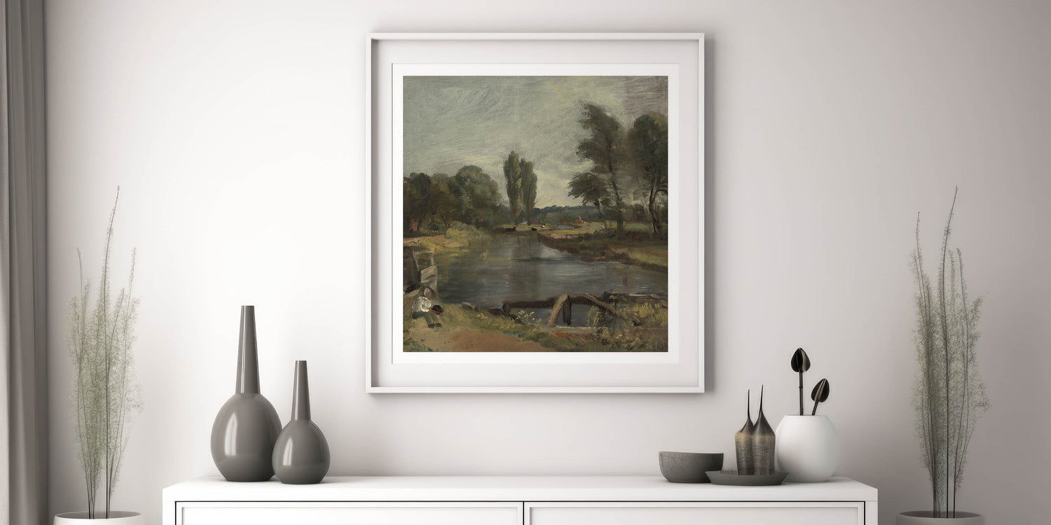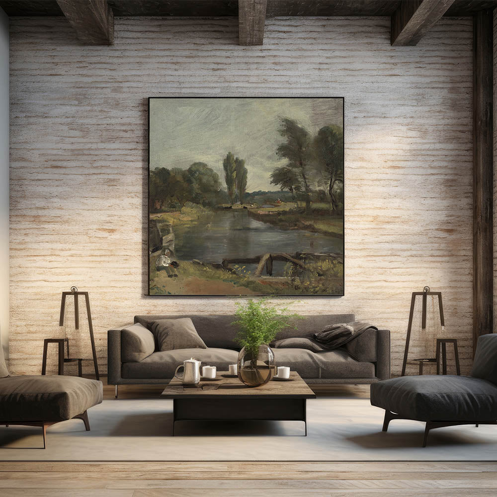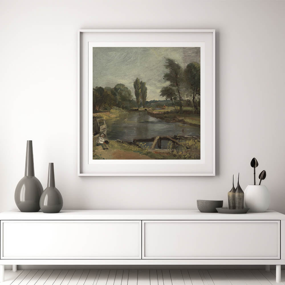 Experience the serene beauty of Romanticism style wall art with Flatford Lock, a masterpiece by John Constable. This artwork showcases a tranquil countryside scene, featuring a reflective waterway surrounded by lush trees and a peaceful sky. Renowned for its focus on natural beauty and the ordinary charm of rural life, this piece embodies the essence of classic art of the Romantic era. Its soft textures and balanced composition create an inviting atmosphere, ideal for enriching any interior space.