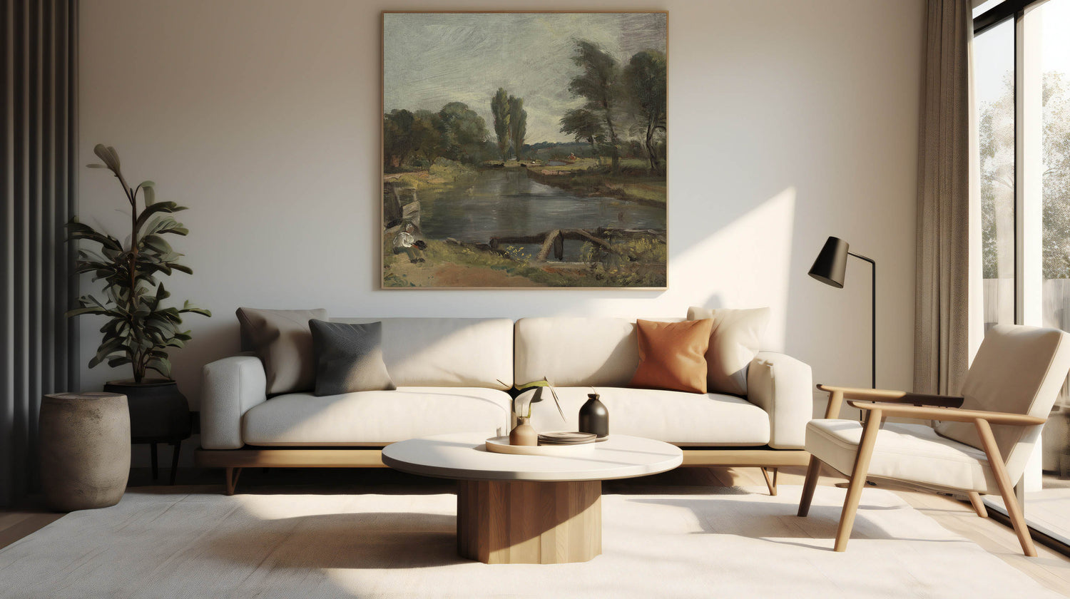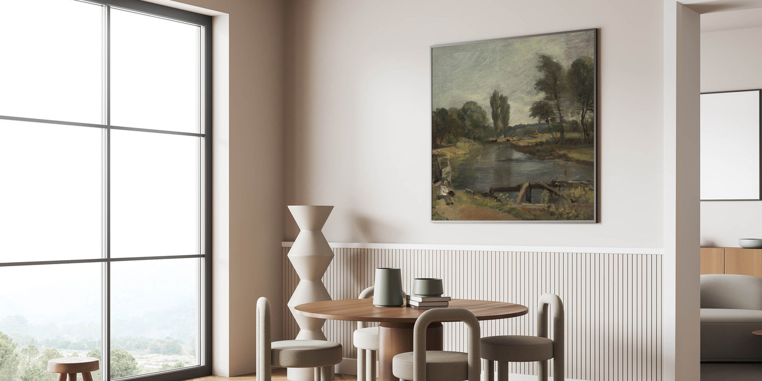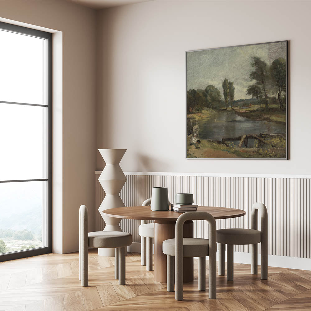 Experience the serene beauty of Romanticism style wall art with Flatford Lock, a masterpiece by John Constable. This artwork showcases a tranquil countryside scene, featuring a reflective waterway surrounded by lush trees and a peaceful sky. Renowned for its focus on natural beauty and the ordinary charm of rural life, this piece embodies the essence of classic art of the Romantic era. Its soft textures and balanced composition create an inviting atmosphere, ideal for enriching any interior space.