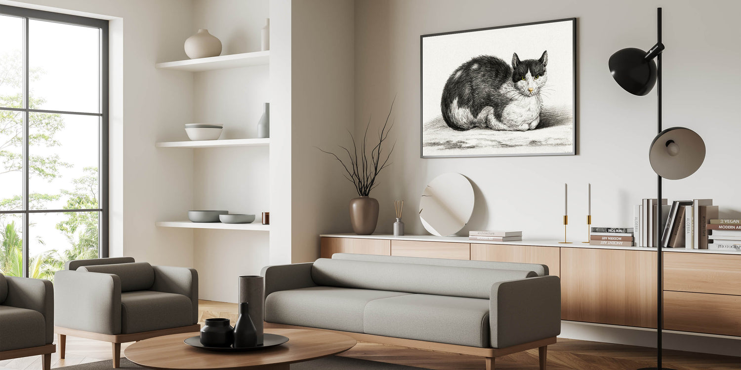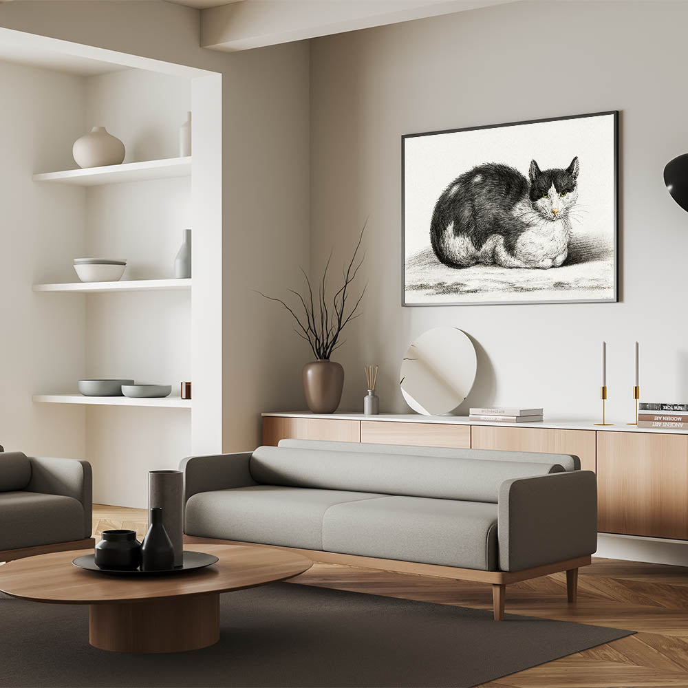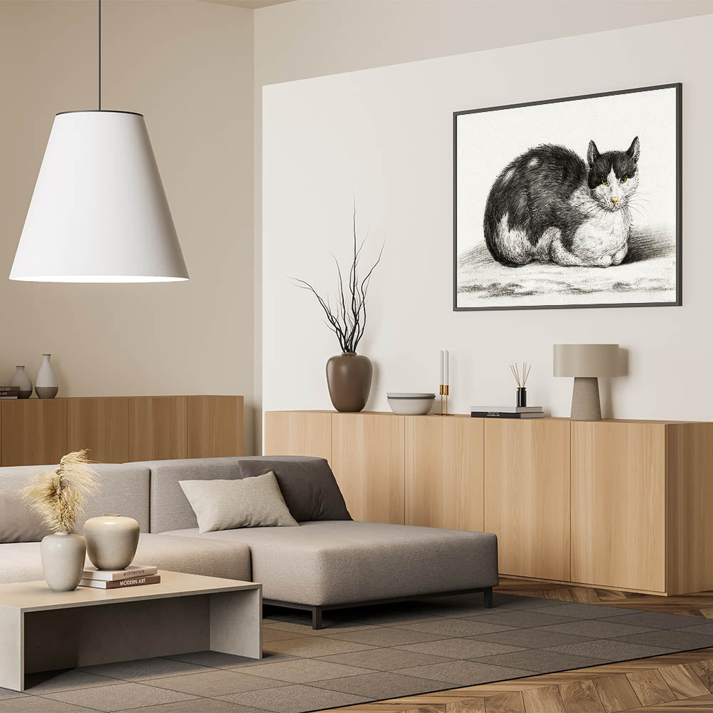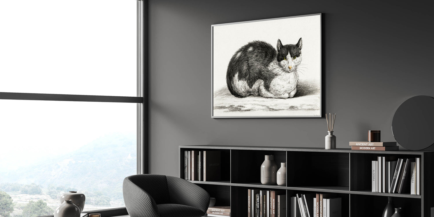 Transform your home with this Romanticism style wall art, a testament to the elegance of the Romantic era. The serene depiction of the cat brings timeless beauty and a sense of calm to your décor.