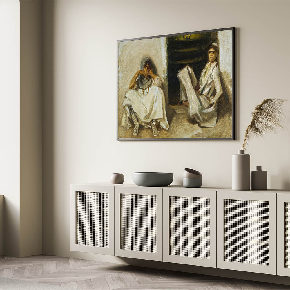 This exquisite piece, "Two Arab Women" by John Singer Sargent, captures the essence of Romanticism through its emotional depth and cultural storytelling. Rendered in soft brushstrokes, the painting depicts two women in quiet contemplation, evoking themes of introspection and resilience. Perfect for art lovers seeking meaningful pieces, this artwork adds a sense of history and elegance to any space.