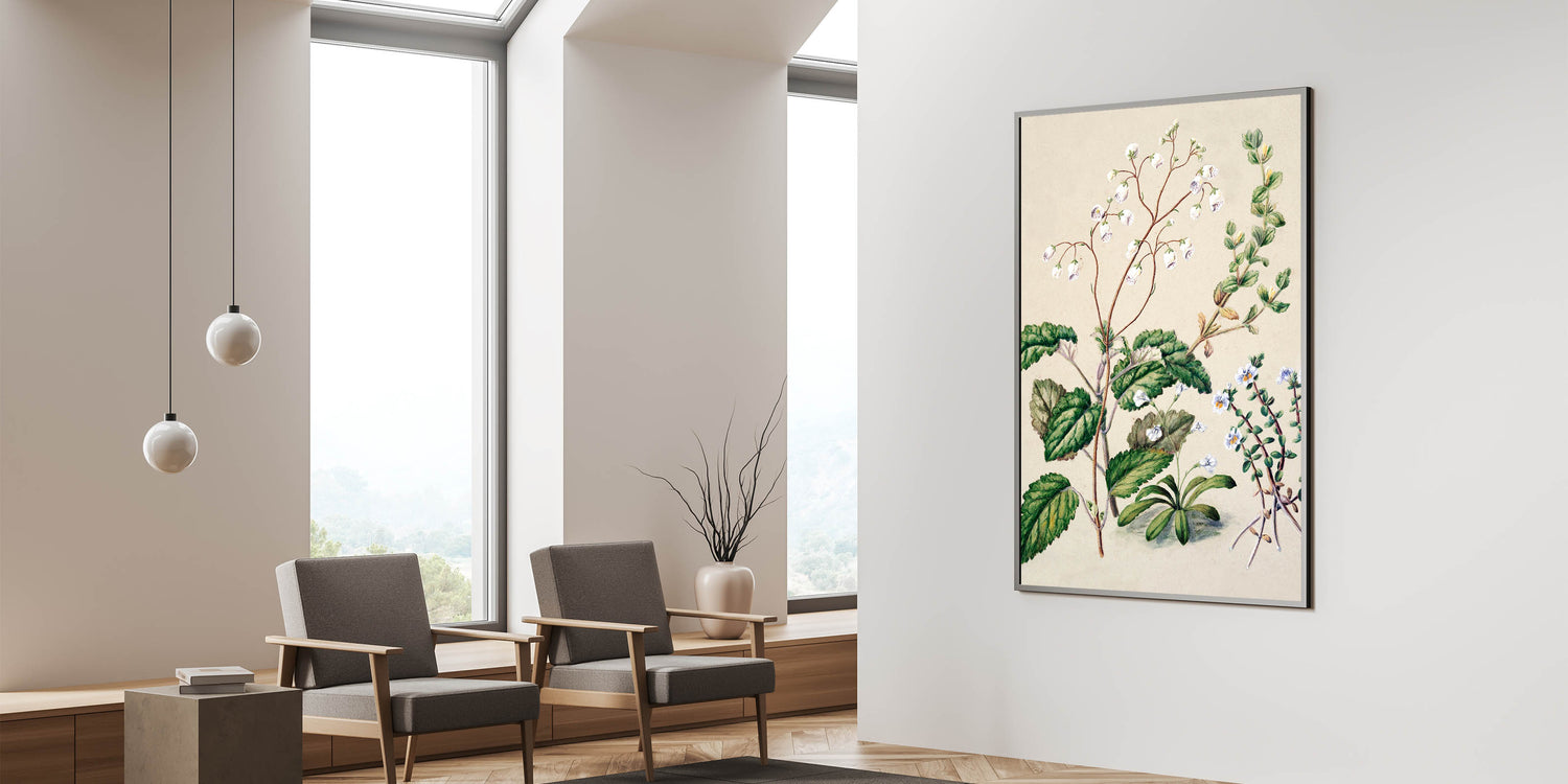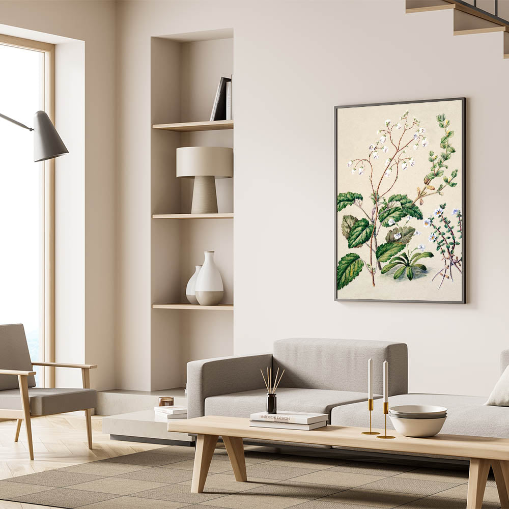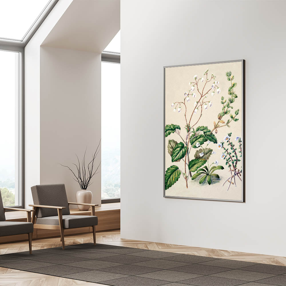 Introduce a touch of nature’s elegance with our "Classical Realism Botanical Art Print," featuring detailed illustrations of Calceolaria Sinclarii, Mazus Pumilio, and Mimulus Repens. Crafted with precision, this artwork brings the charm of 19th-century botanical studies into your home.