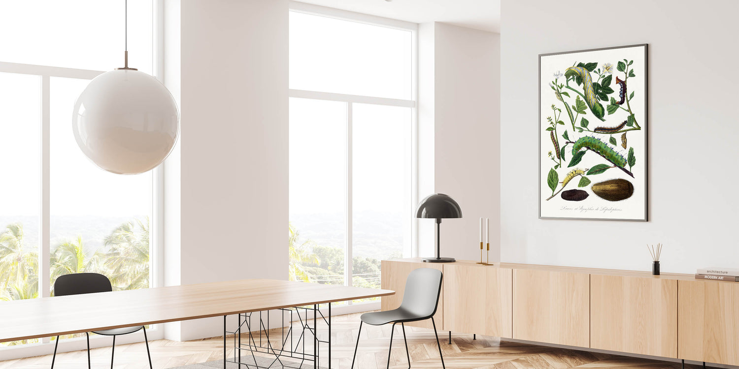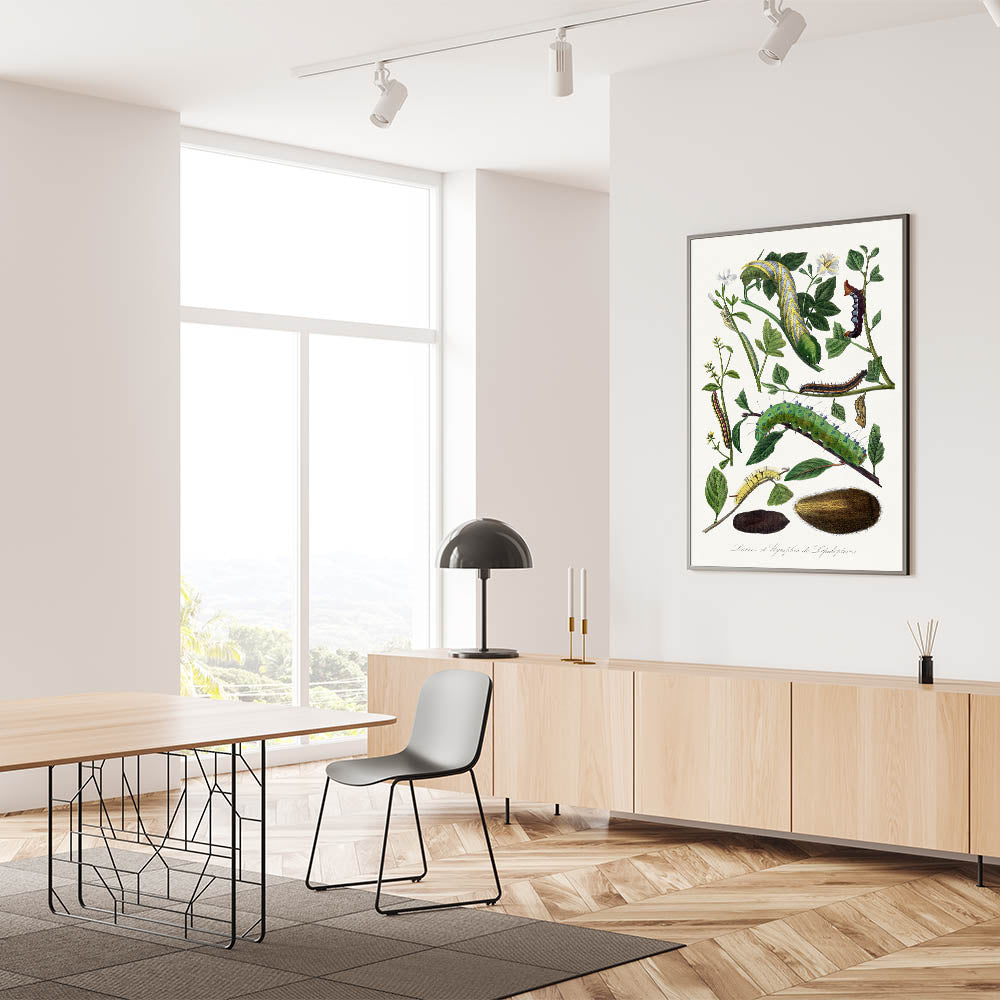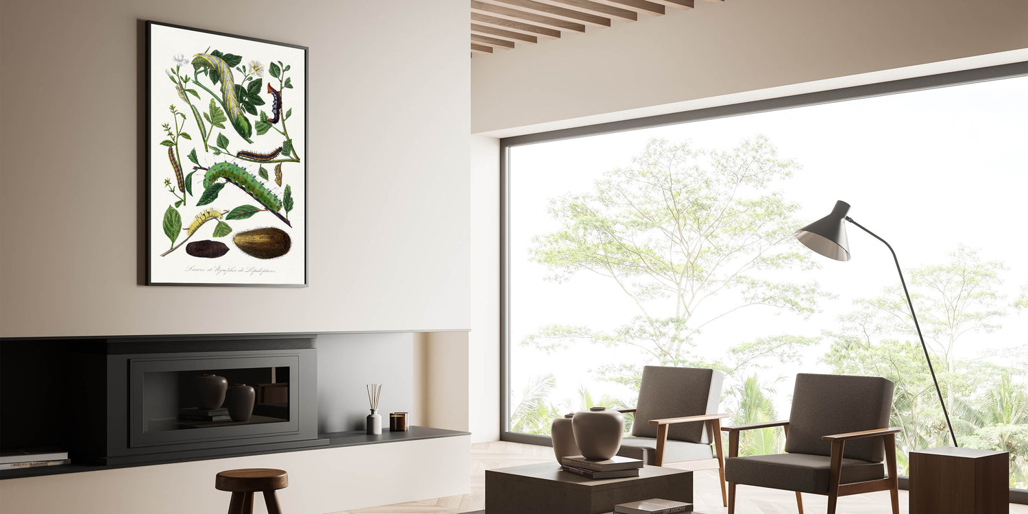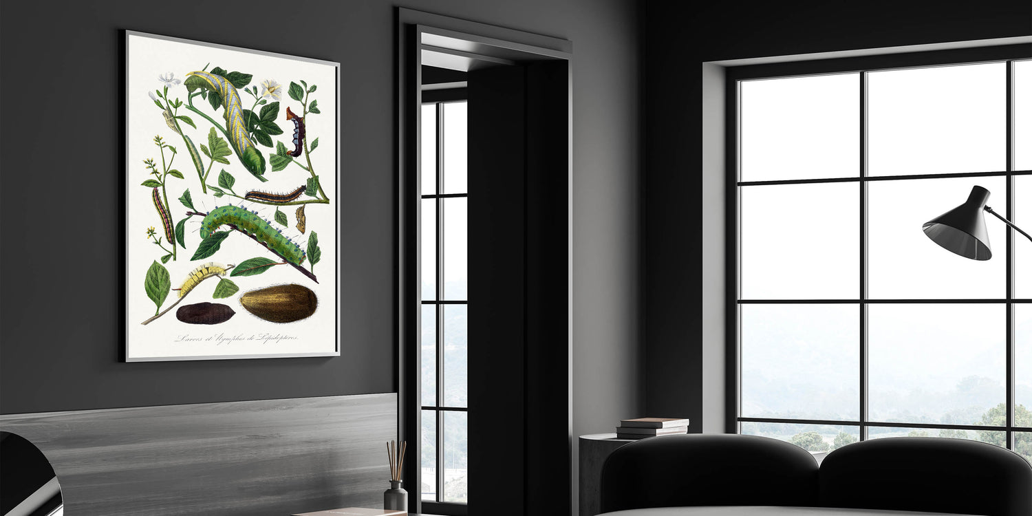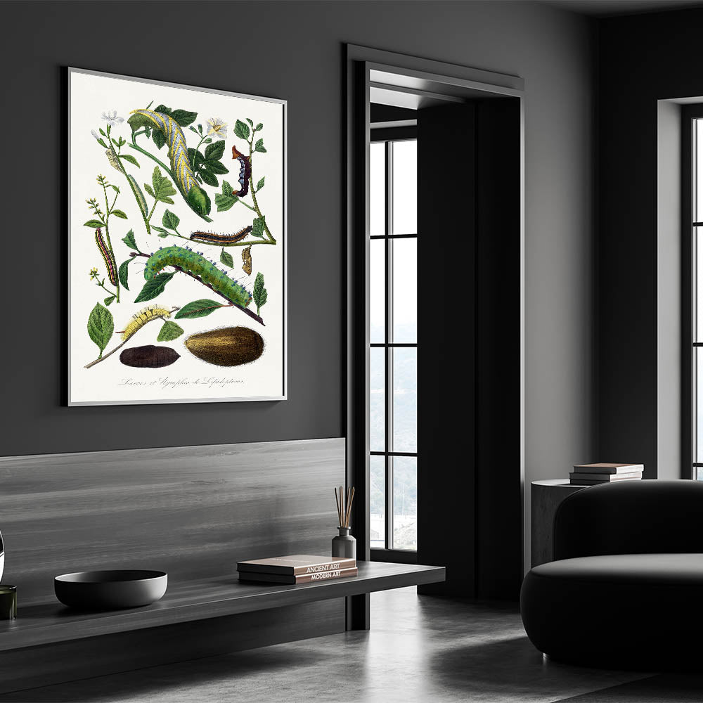 Explore the captivating beauty of nature with this detailed caterpillar illustration from the 1842 edition of Le Jardin Des Plantes by Paul Gervais. This artwork showcases the intricate forms and vibrant colors of caterpillars and their natural surroundings, embodying the Romantic era’s fascination with the natural world. Perfect for enthusiasts of botanical art and historical design, this piece brings a timeless touch of elegance and scientific curiosity to your space.