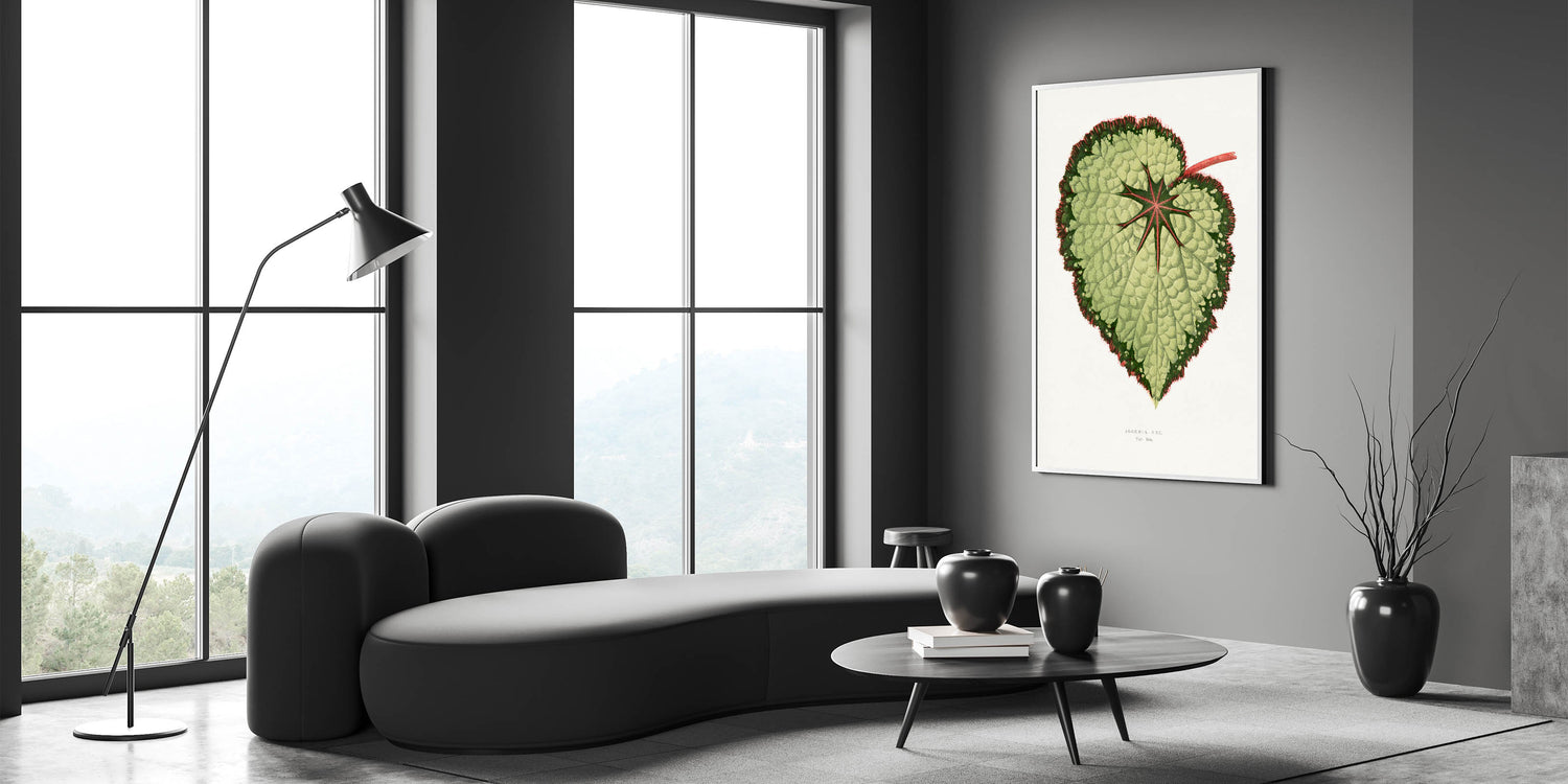 Transform your living space with this stunning "Green Begonia Rex" illustration, a masterpiece inspired by the Romanticism art movement. This intricate depiction of the begonia leaf features vibrant shades of green, complemented by red highlights, embodying the timeless appeal of Romantic art prints. Perfect for art collectors and nature enthusiasts alike, this piece captures the essence of classic Romantic paintings and the emotional connection to natural beauty.