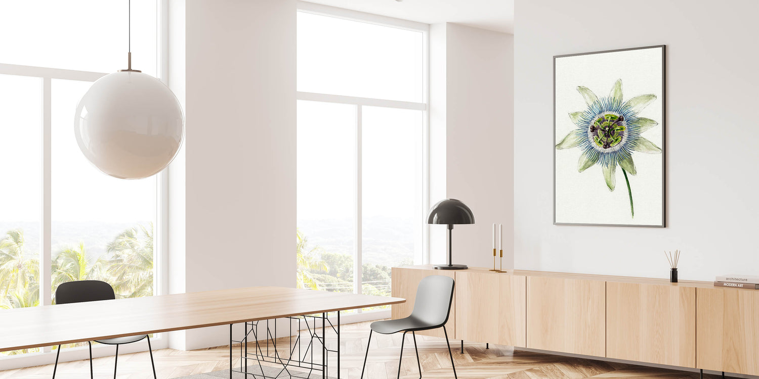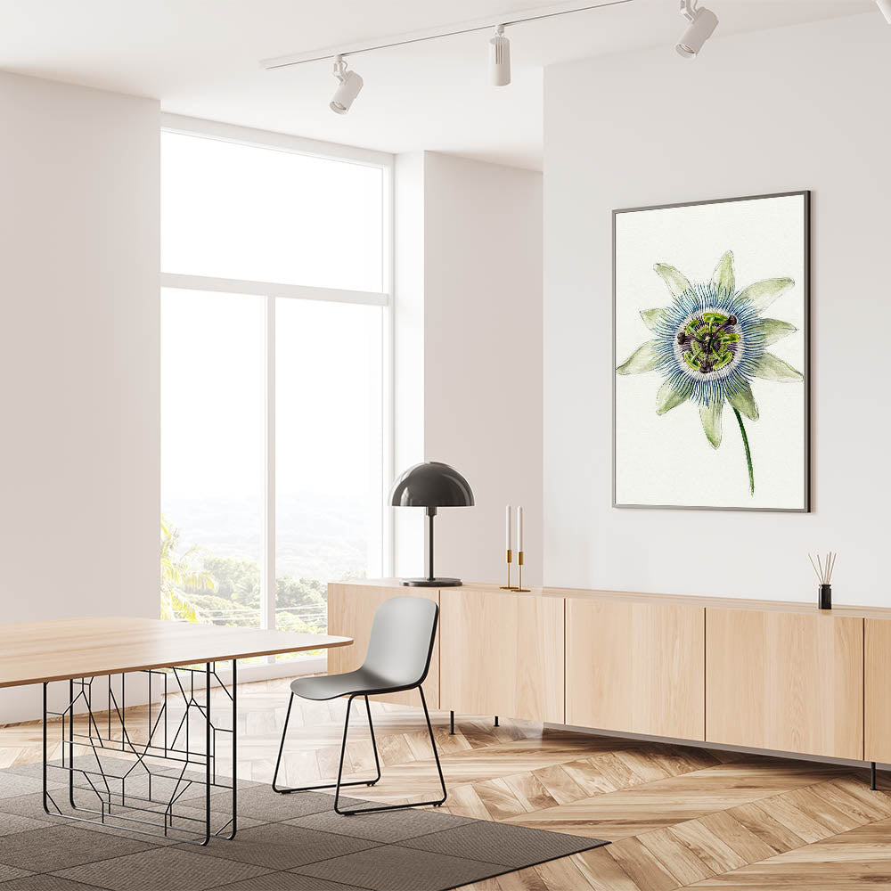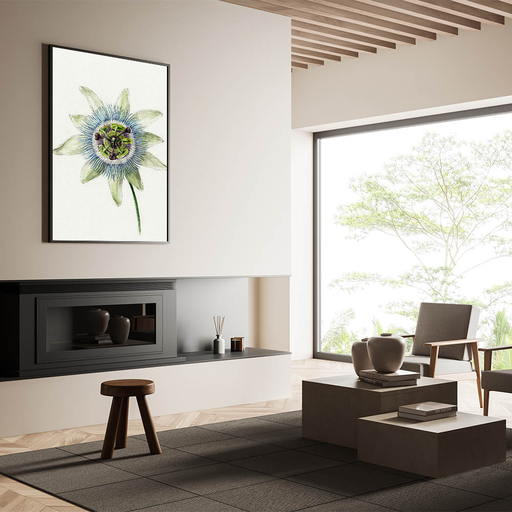 Add "Passion Flower" to your collection to elevate your decor with the delicate beauty of Romanticism style wall art. This piece serves as a centerpiece that exudes timeless charm and sophistication.