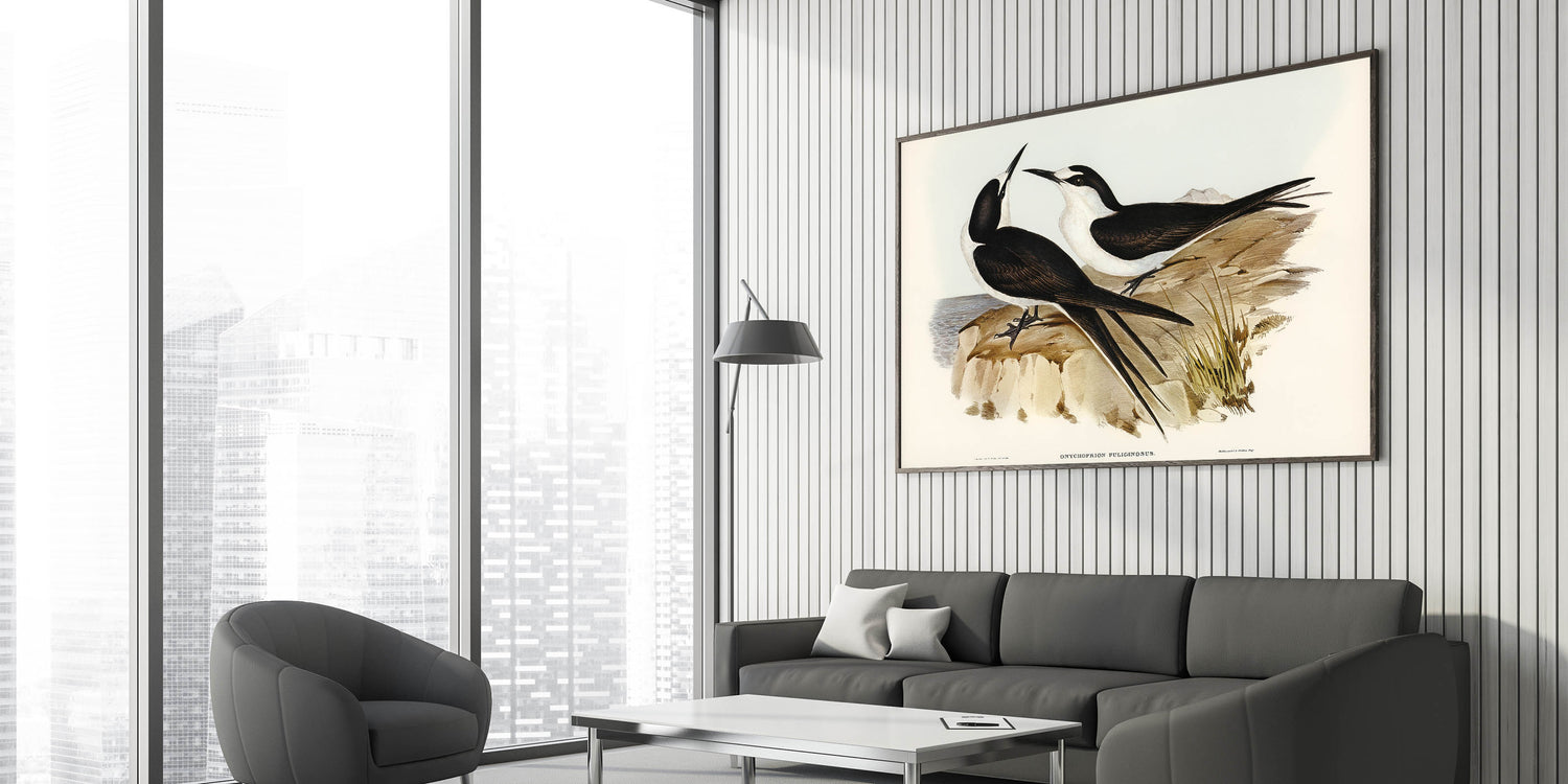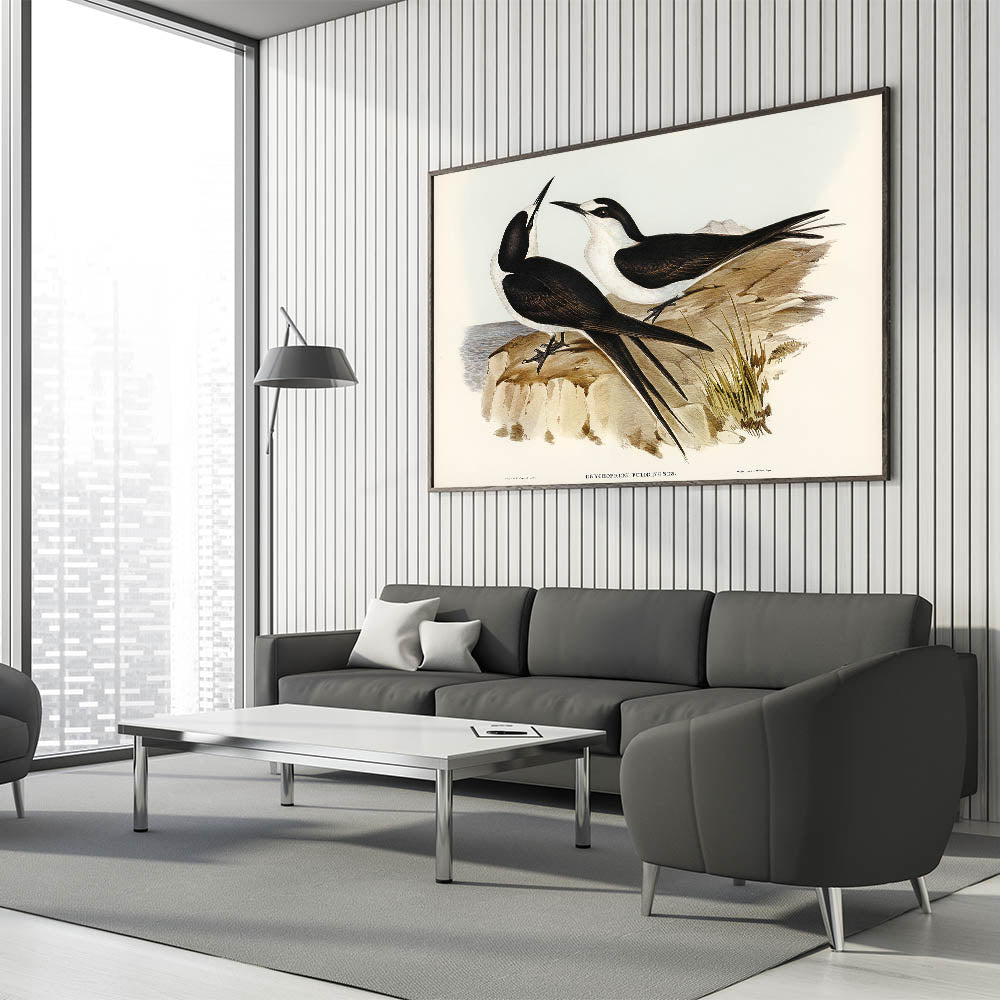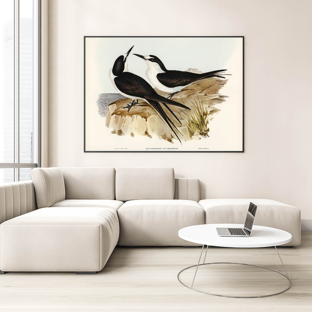 Celebrate the Romantic era’s deep appreciation for nature with this elegant illustration of the Sooty Tern (Onychoprion fuliginosus), masterfully created by Elizabeth Gould. This detailed artwork captures the harmonious balance between the birds’ sleek forms and their serene coastal surroundings. Perfect for bird enthusiasts and art lovers alike, this piece brings a timeless charm to your space.
