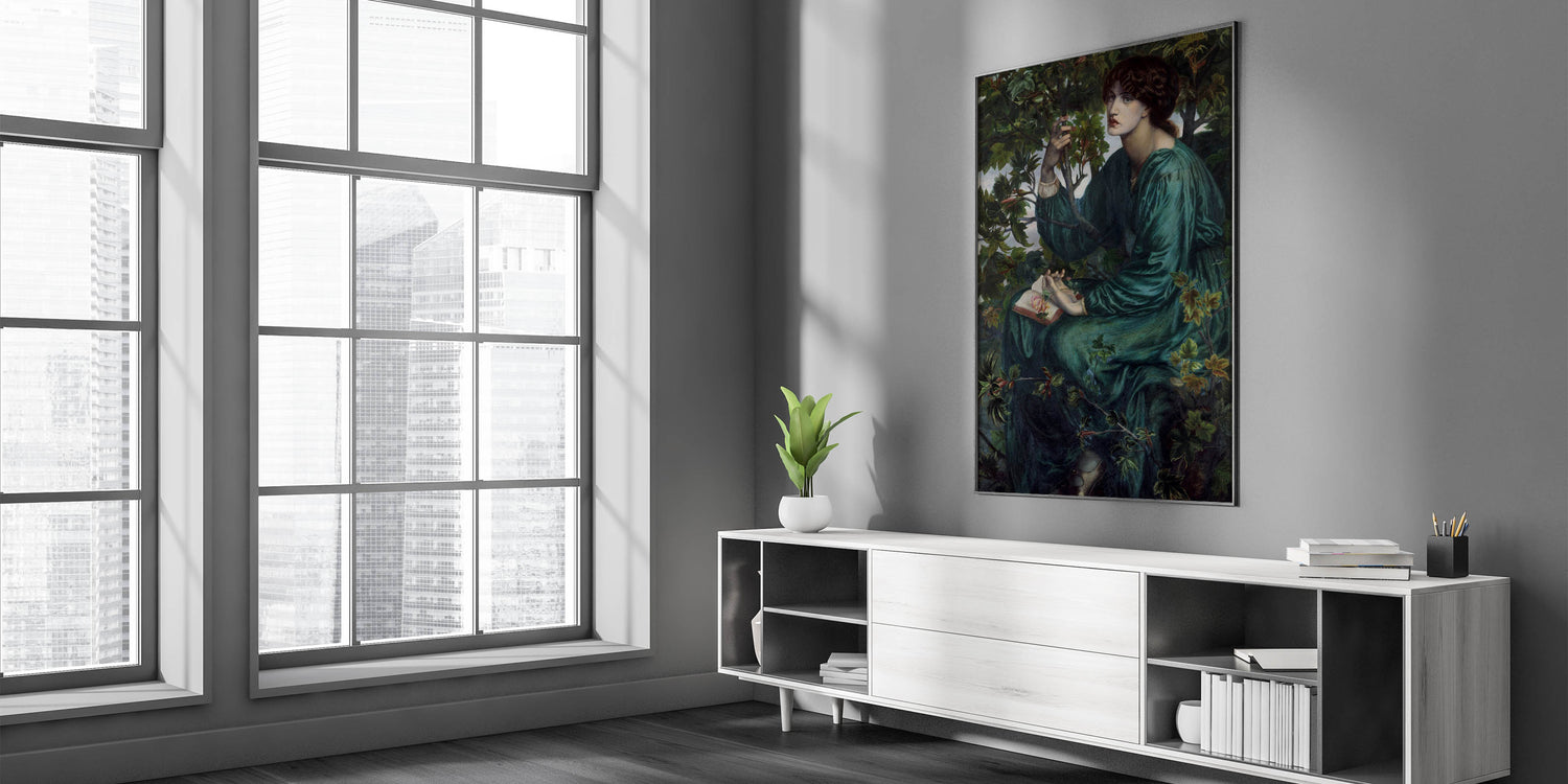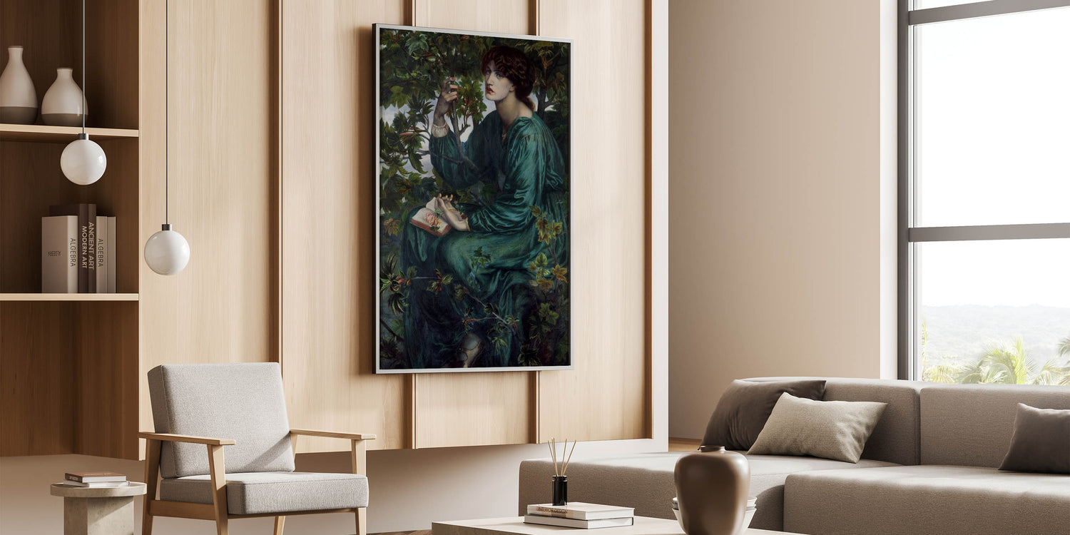 Add timeless beauty to your space with "The Day Dream," a celebrated Romanticism masterpiece by Dante Gabriel Rossetti. This evocative painting features a contemplative woman seated amidst lush greenery, adorned in a flowing green dress. With its rich details, dramatic use of light and shadow, and subtle emotional depth, this artwork exemplifies the elegance of Romantic art prints. Perfect for enhancing home decor, it captures the harmony of nature and human emotion central to the Romantic era.