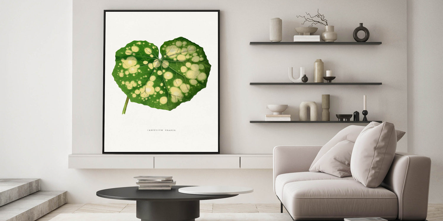 Enhance your décor with Farfugium Grande, a timeless botanical illustration that combines historical significance with natural elegance.