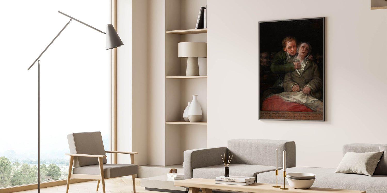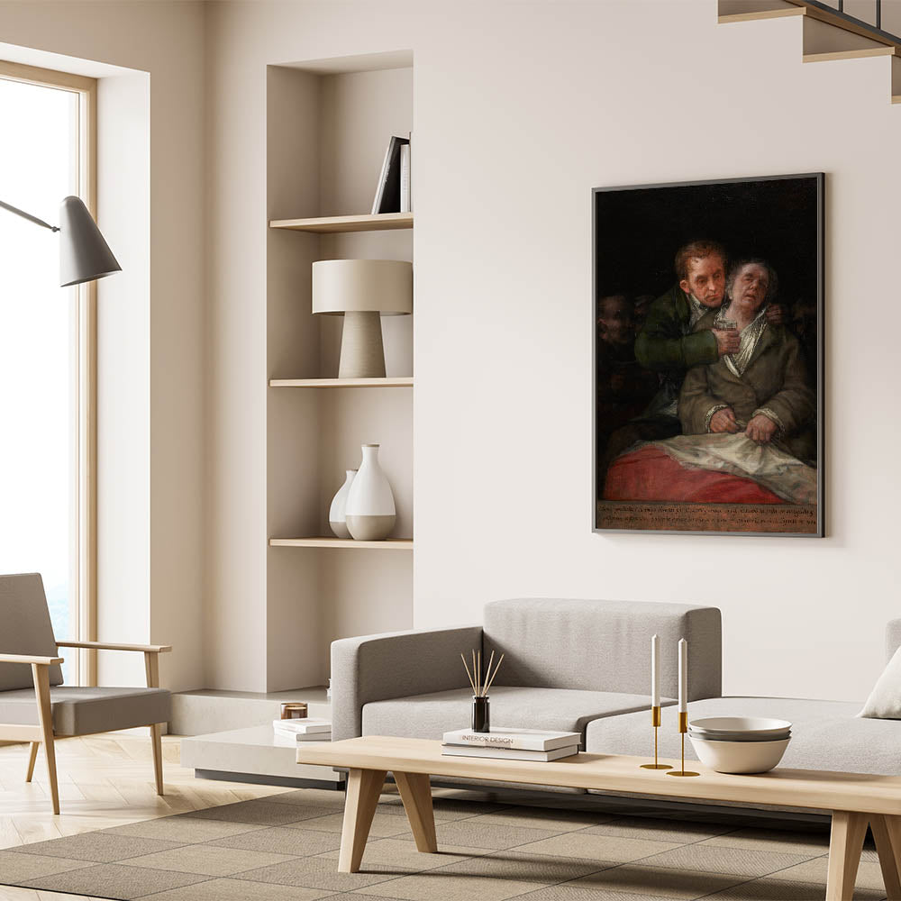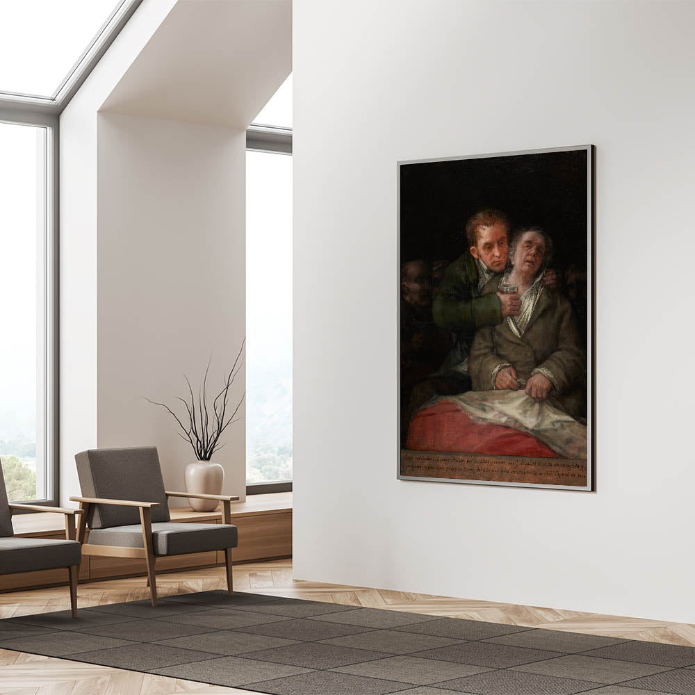 Immerse yourself in the depth and intensity of Romanticism with this poignant artwork by Francisco Goya. This emotional piece captures a profound moment of care and compassion, rendered in dramatic tones and masterful detailing. With its rich shadows and tender expressions, this Romantic-era painting tells a story of humanity, resilience, and connection, making it a powerful addition to any art collection.