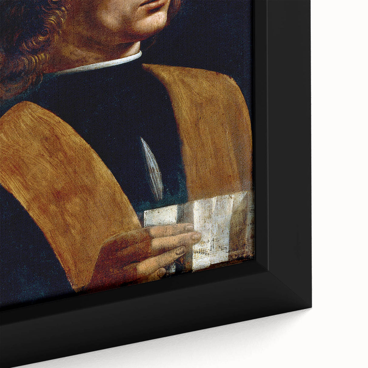 Celebrate the genius of Leonardo da Vinci with the "Portrait of a Musician", one of his most intriguing Renaissance masterpieces. This captivating artwork features a young man, presumed to be a musician, holding a sheet of music while gazing contemplatively into the distance. The rich contrast between the musician's bright red cap and dark background exemplifies Leonardo's mastery of chiaroscuro, making this painting a timeless symbol of artistic brilliance.