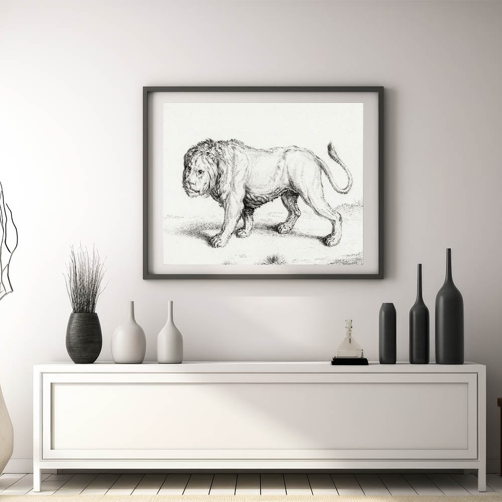 Lion Sketch by Jean Bernard - Romanticism Black and White Wall Art