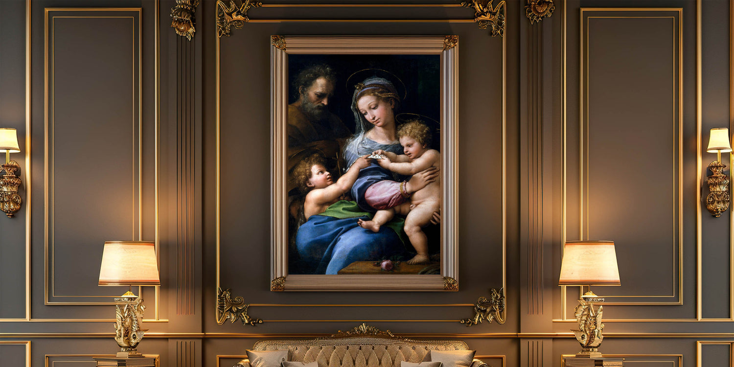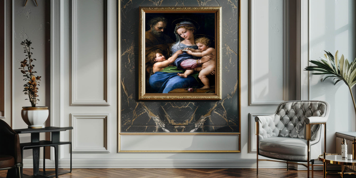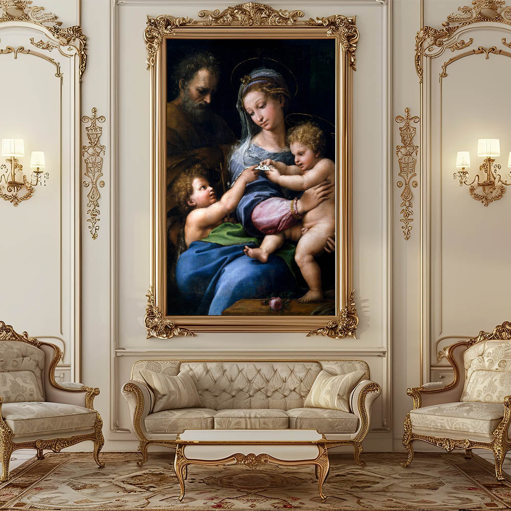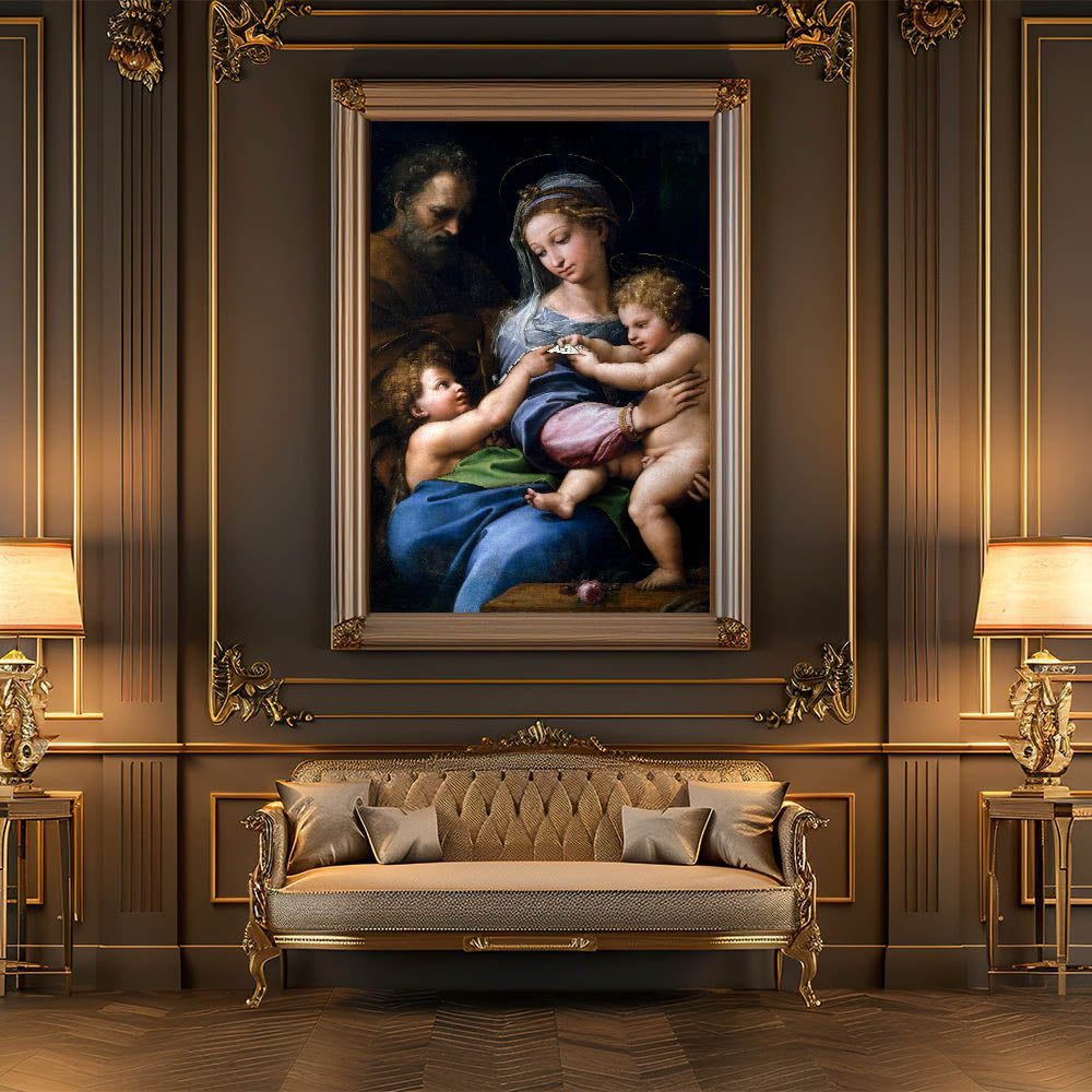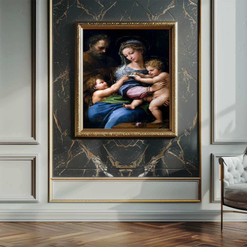 Elevate your home with the serene beauty of Madonna of the Rose, a masterpiece by Raphael. This iconic Renaissance artwork portrays the Virgin Mary with Christ Child and St. Joseph, capturing the essence of maternal tenderness and divine love. The delicate rose in the composition symbolizes purity and devotion, characteristic of Raphael's mastery.
